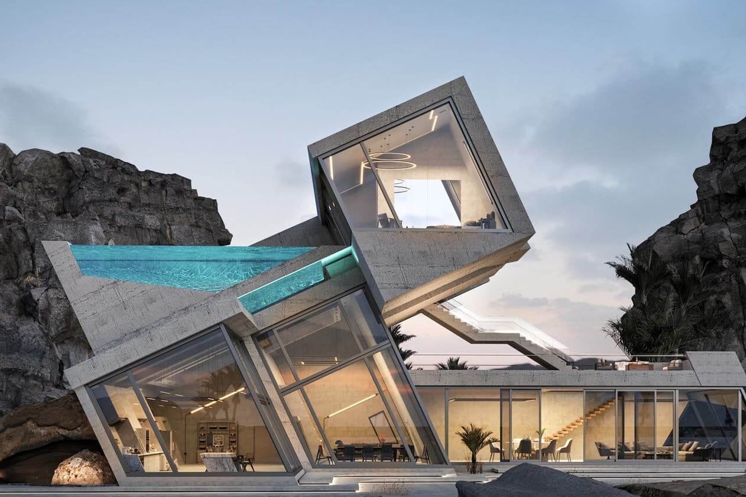 Al piano terra vi sono il soggiorno e la sala da pranzo, con annessi un bagno e una cucina. La creatività del design si manifesta nella terrazza, dalla quale è possibile osservare l’intero panorama mentre ci si gode una bevanda calda nelle prime ore del mattino. Al piano di sopra c’è l’affascinante camera da letto principale e una porta separata per tuffarsi nella spettacolare piscina panoramica nelle calde giornate estive, che lo rende un luogo spettacolare dove soggiornare durante le vacanze.