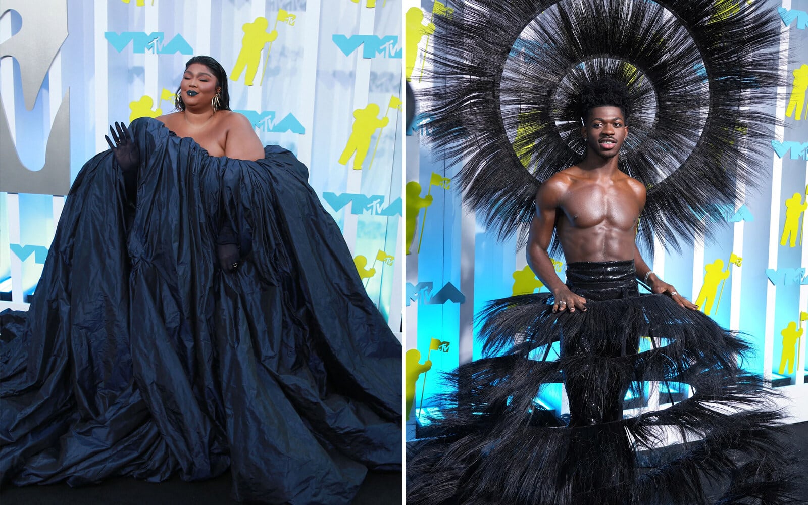Proseguendo, Lil Nas X ha fatto la propria comparsa indossando una mise che può ricordare gli eccentrici abiti del carnevale di Rio, sostituendo però i vivaci cromatismi dei vestiti celebrativi a un look total-black con tanto di gonna e copricapo monumentale. Il vestito di Harris Reed lascia il petto e la schiena completamente scoperti. Jack Harlow e Avril Lavigne hanno optato per degli outfit semplici e minimal, che hanno premiato anche in questo caso l'importanza del colore nero. Rispettivamente, il rapper ha sfoggiato un completo in pelle di Hermès, mentre la rockstar statunitense si è presentata indossando una maglietta a maniche lunghe abbinata a cargo pants neri e cintura Versace.DJ Khaled, reduce dalla pubblicazione del suo ultimo album, ha sfoggiato un completo Prada color grigio composto da pantalone e camicia a maniche lunghe impreziosita dall'iconico branding triangolare, mentre il premio per l'abito più particolare della manifestazione va assegnato senza alcun dubbio a Lizzo, in Jean Paul Gaultier.