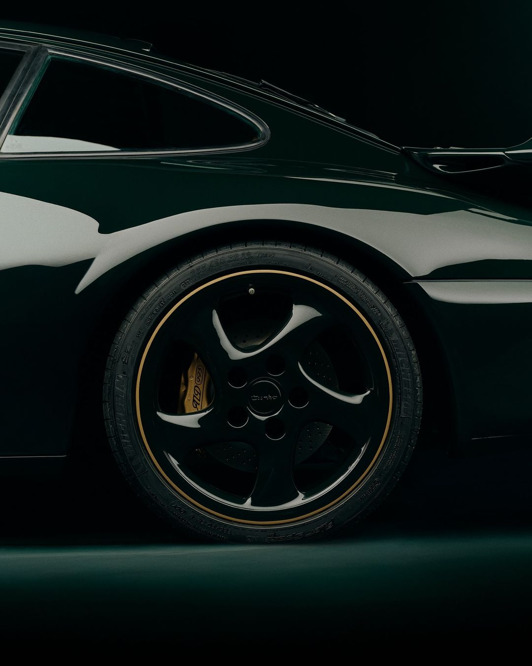 Per quanto riguarda l’esterno, i due marchi hanno deciso di dipingere l’esclusivo modello in Mulberry Green, colore sviluppato da ALD nel corso degli anni e oggi divenuto un suo tratto distintivo. Elementi tratti dalla Porsche 993 Turbo S incrementano poi sia le performance che il look dell’automobile, come il doppio scarico, lo spoiler posteriore “a coda di balena” e lo splitter anteriore; grazie a queste aggiunte, la vettura può vantare un aspetto tanto elegante quanto sportivo.