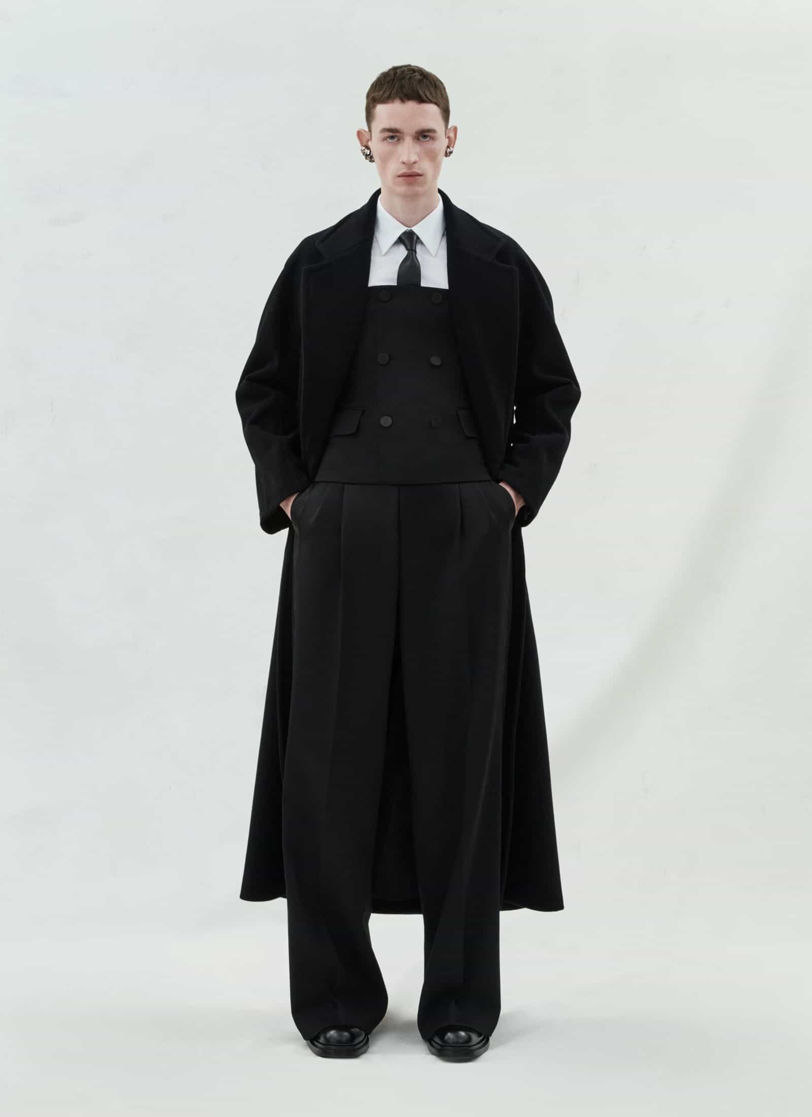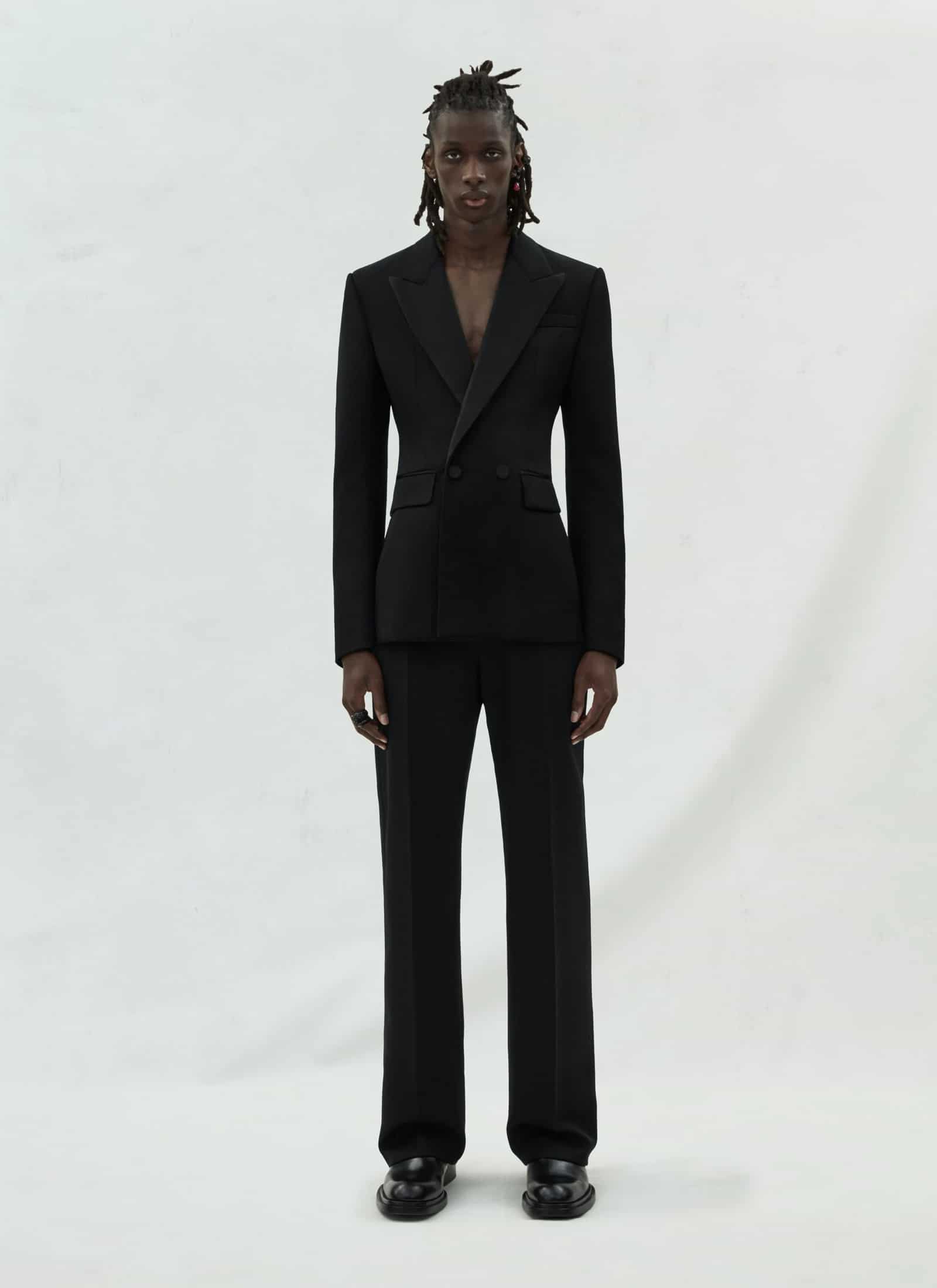 La linea viene definita dal brand come un “ritorno alla formalità”, ed è proprio nella ricerca di un “ritorno” che la maison ha avuto la possibilità di creare un nuovo concetto di formalwear. Parliamo nello specifico di un concept che unisce l’abbigliamento tradizionale maschile alle forme dell’haute couture femminile, facendo del suo punto cardine la presenza di silhouette caratterizzate da fianchi stretti e spalle ampie.