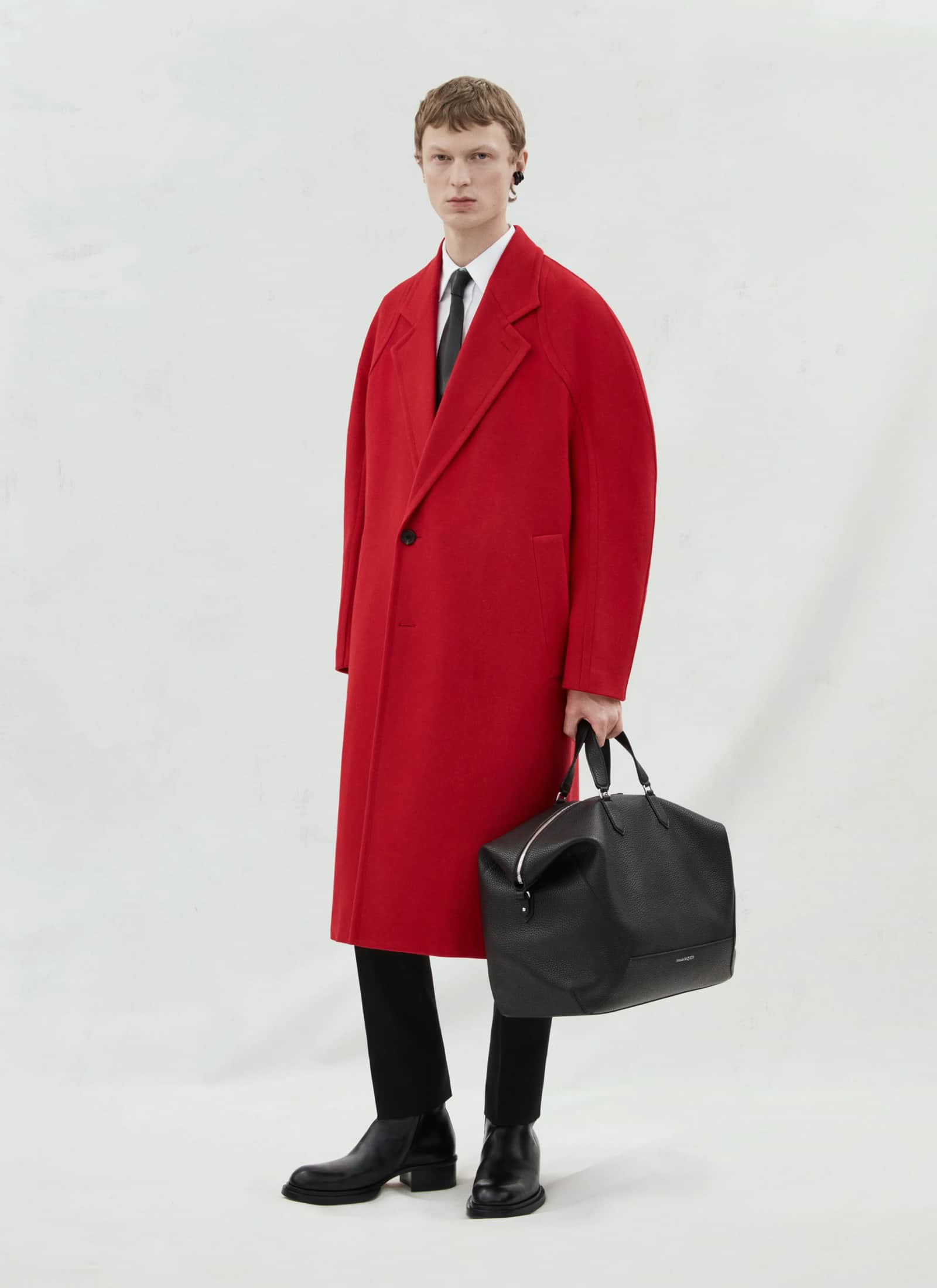 Come a ricordare la silhouette di una raffinata clessidra, gli abiti della nuova collezione di Alexander McQueen attirano l’attenzione dello spettatore tramite una sperimentazione che non trascura le radici stilistiche del brand: tailleur classici vengono rivisitati per diventare tute a vita alta con schiena scoperta, mentre cappotti con spalle ampie impongono la loro importanza tramite revers dalle dimensioni mastodontiche e maniche a palloncino.