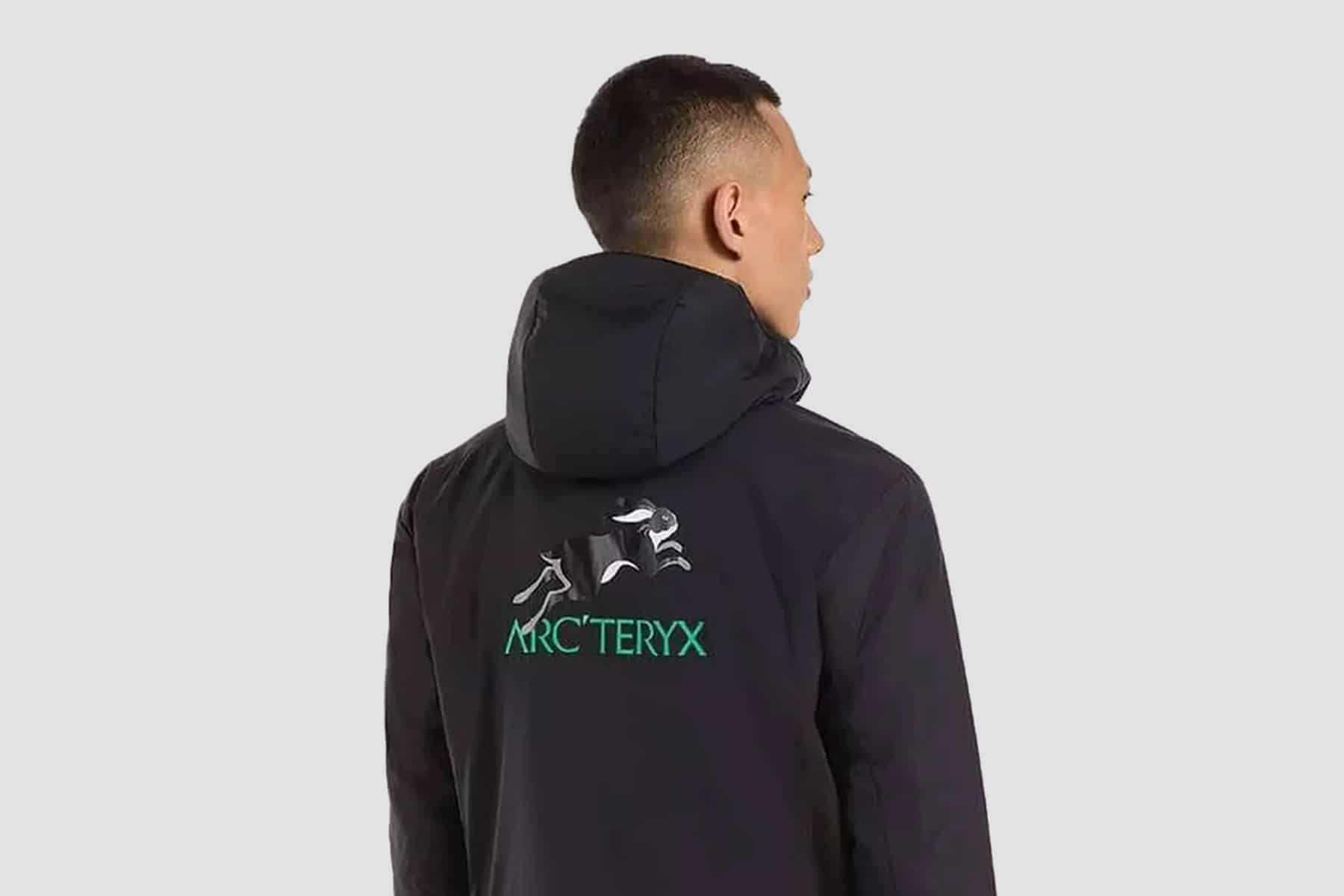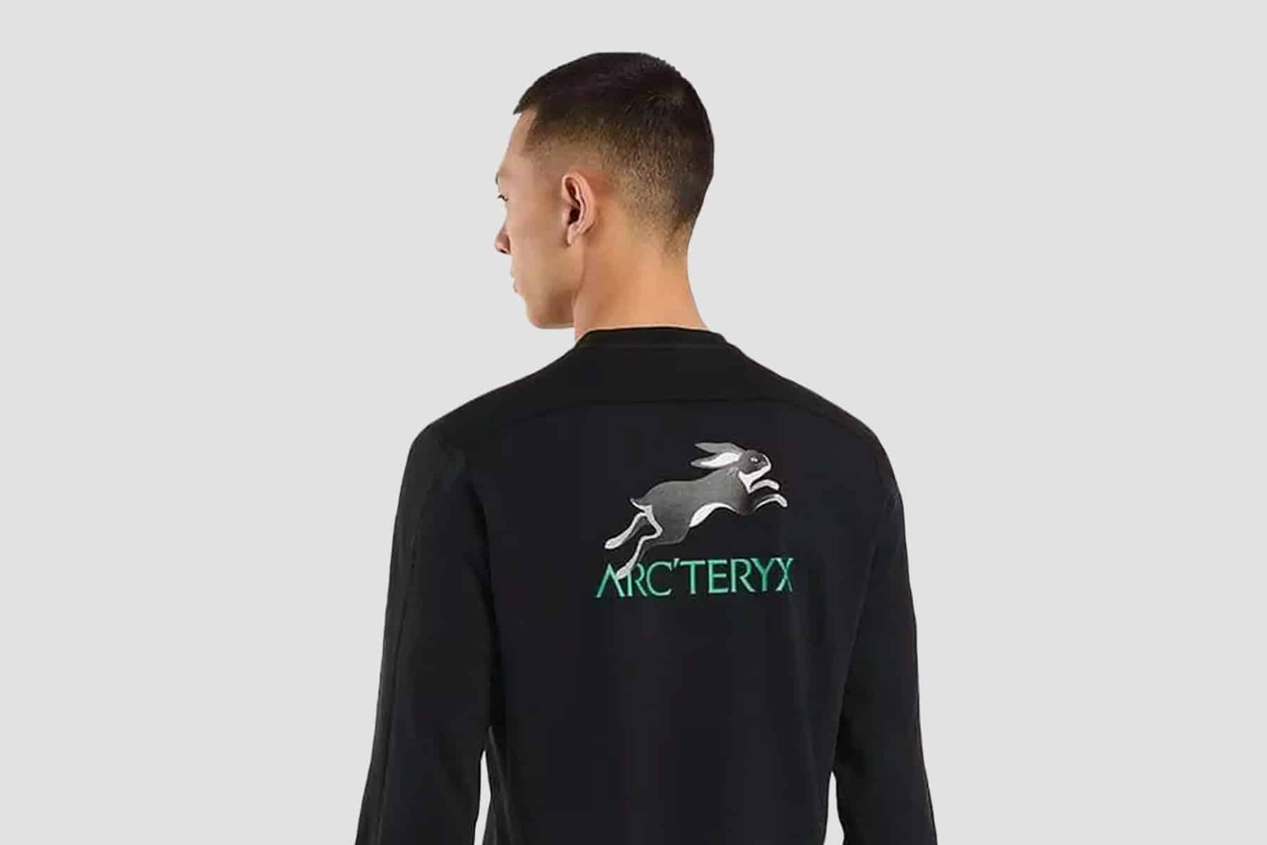 Le foto rendono protagonisti alcuni dei più popolari articoli di Arc’teryx: parliamo nello specifico della giacca Alpha SV, la felpa con cappuccio Atom LT e la maglietta Motus AR. Tutti i capi menzionati vengono rivisitati attraverso l’applicazione della grafica di un coniglio stilizzato sul davanti e sul retro, che sostituisce il suo tipico logo. Accanto all’animale in procinto di saltare, il branding cucito è evidenziato in una sfumatura di turchese scuro.