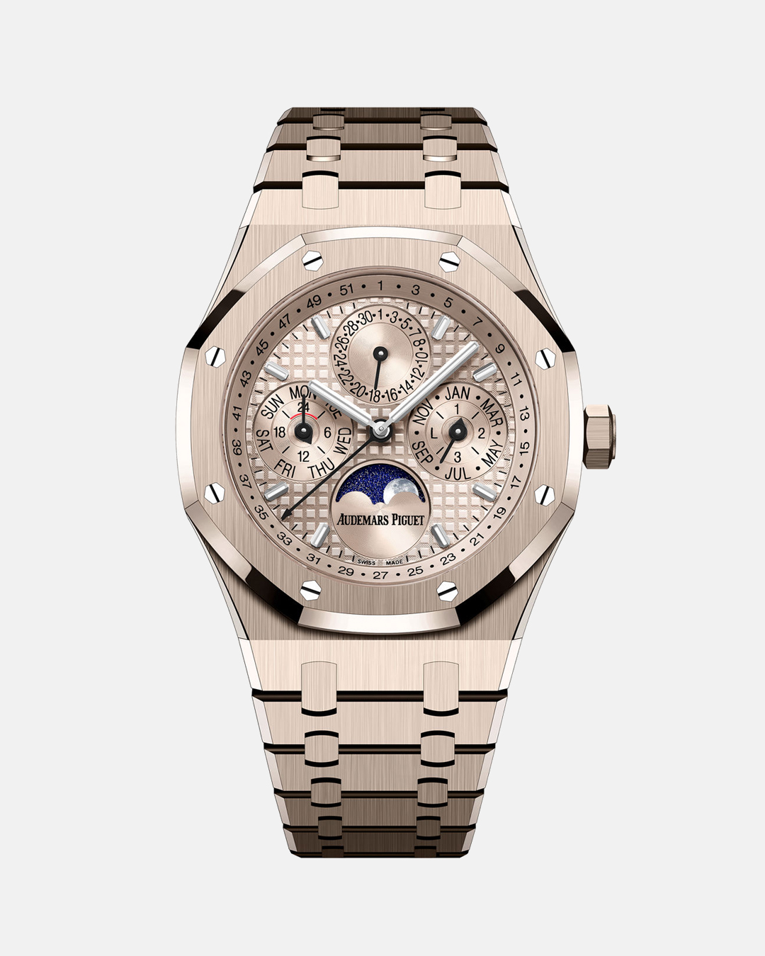 Protagonisti indiscussi dei festeggiamenti sono tre nuovi orologi Calendario Perpetuo, equipaggiati con l’inedito Calibro 7138. Questo movimento, frutto di una meticolosa progettazione durata ben cinque anni, introduce una soluzione rivoluzionaria nel mondo Audemars Piguet: grazie alla praticità del sistema “all-in-one”, infatti, tutte le regolazioni del calendario potranno essere accessibili direttamente dalla corona, che offre la possibilità di controllare diverse funzioni scegliendo tra quattro posizioni. Una vera e propria svolta, che oltre ad ottimizzare l’esperienza dell’utente preserva la delicatezza dei complessi meccanismi, riducendo al minimo il rischio di danni.