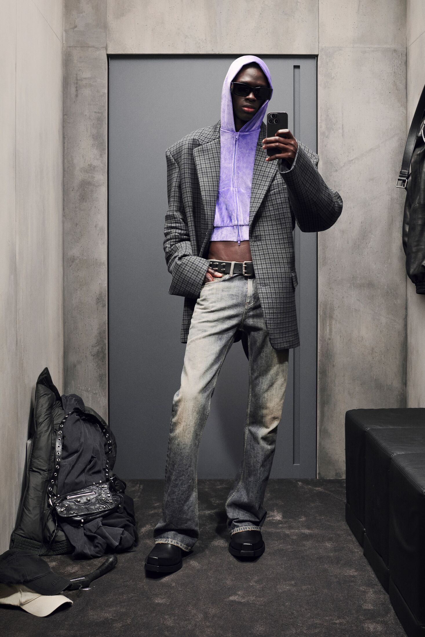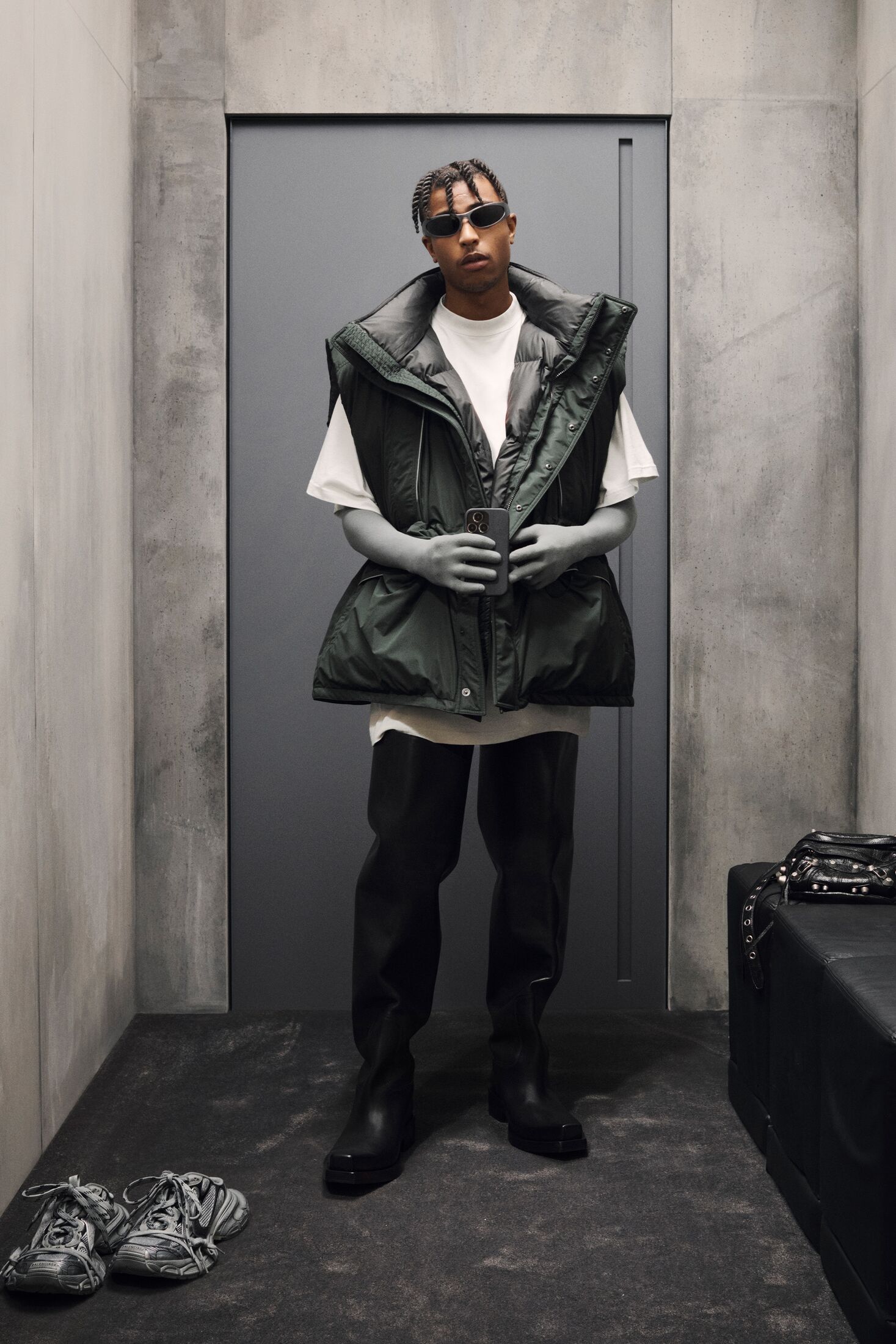Capispalla dal taglio oversize, piumini, biker jacket e varsity jacket dominano il contesto estetico della linea, offrendo una nuova interpretazione dei volumi e giocando con l’idea di ricostruzione e illusione. Anche i materiali non sono da meno: la collezione presenta infatti tessuti innovativi come il molleton sbiancato, la rete gommata e il velluto fluido.