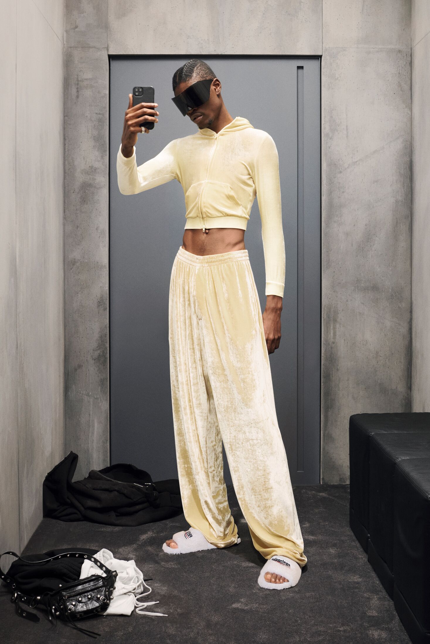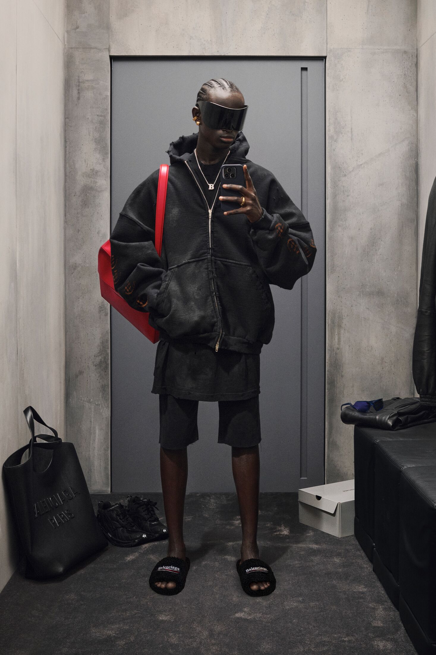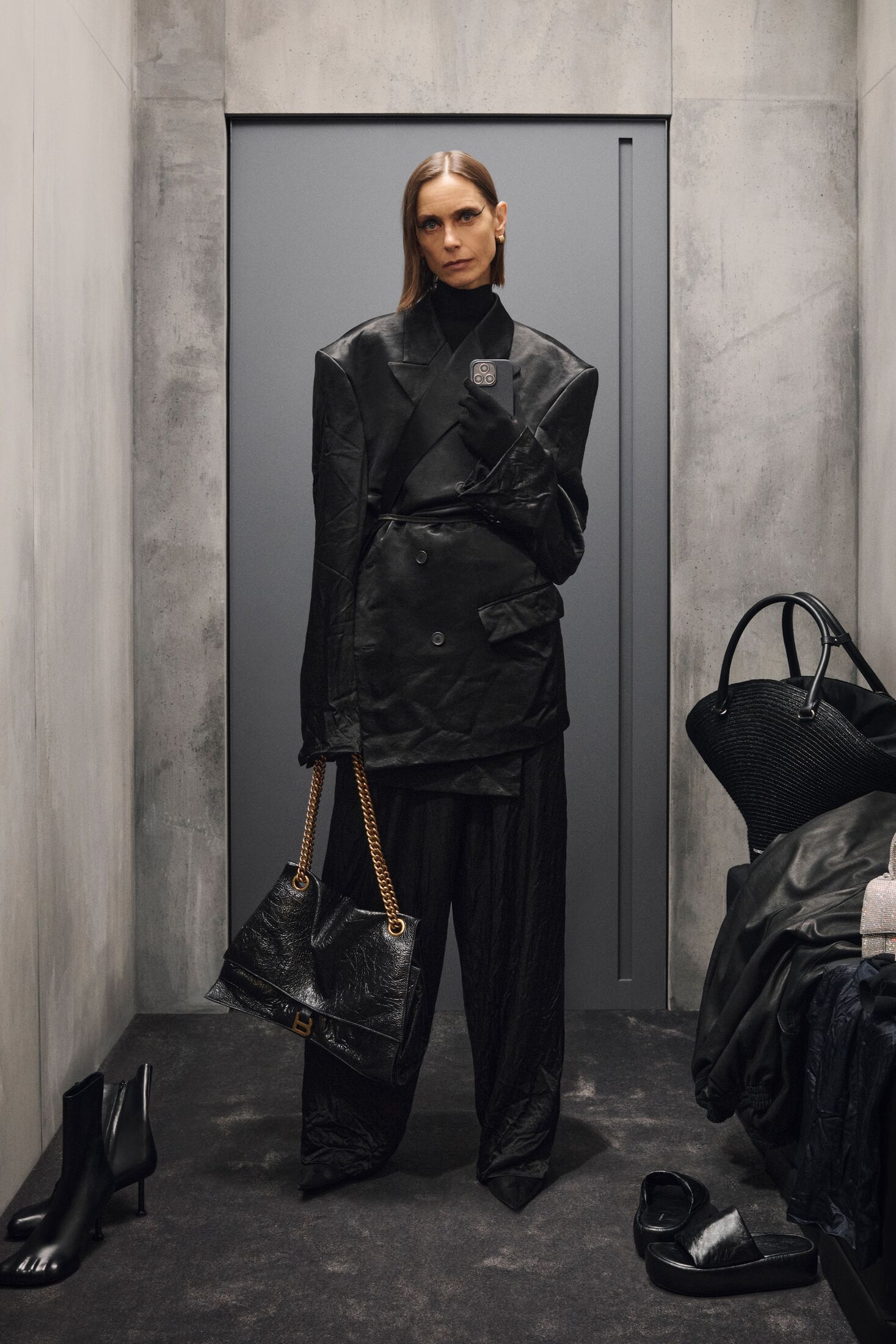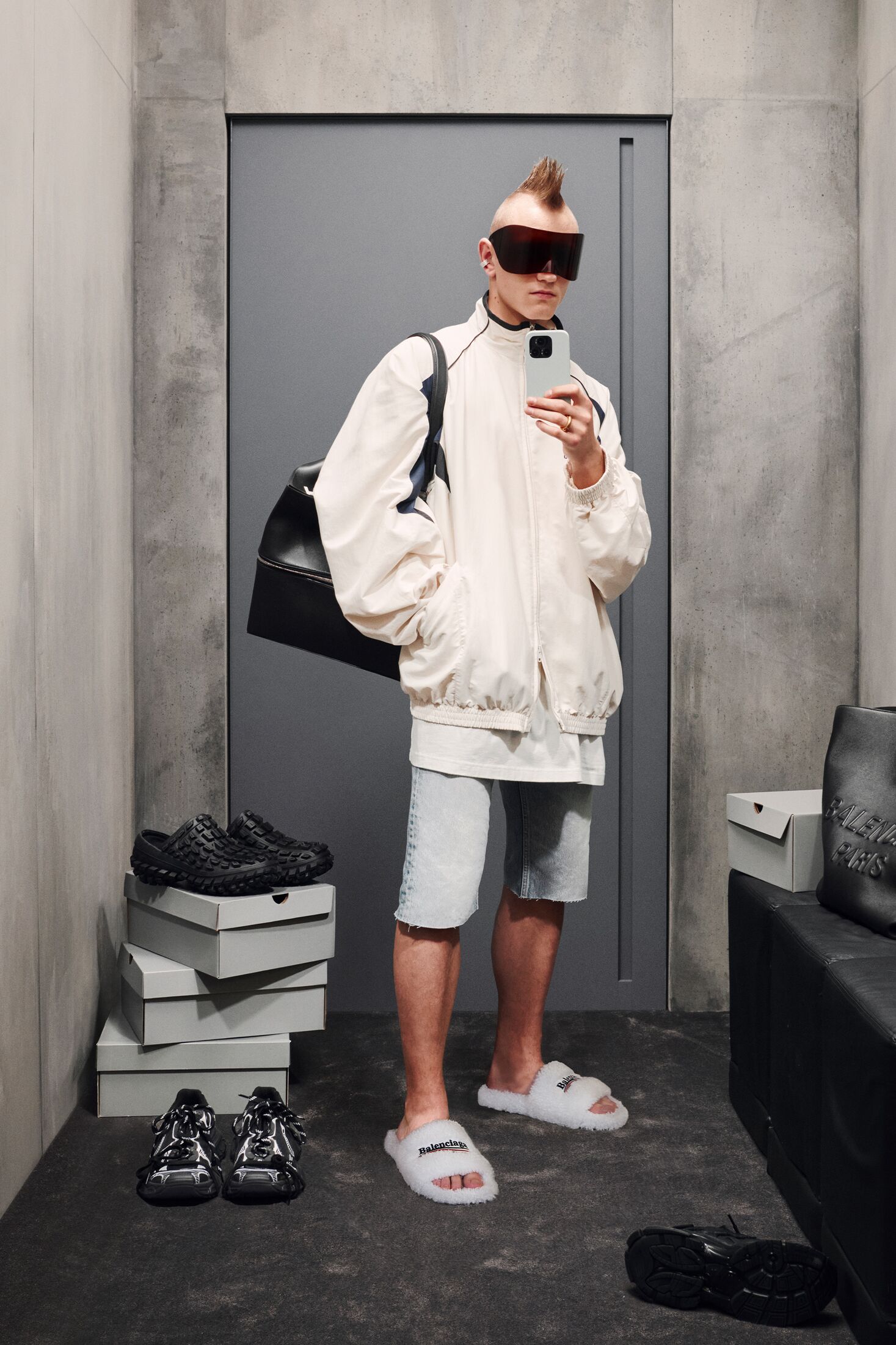 Non poteva mancare infine un vasto focus sul comparto accessori, all’interno del quale la “BB Soft Bag” si rende protagonista indiscussa con le sue forme tanto semplici quanto ricercate, come a ribadire la forte competitività di Balenciaga con le altre maison di taglio internazionale anche per quanto riguarda il reparto pelletteria. Altri accessori come la “Beach Bag” e “Le Cagole” debuttano in nuove iterazioni accanto a una sezione calzature completamente aggiornata, che premia le caratteristiche innovative di articoli come l’Anatomic Shoe, la Home Slide e la Defender (presentate in nuove texture e dimensioni).
