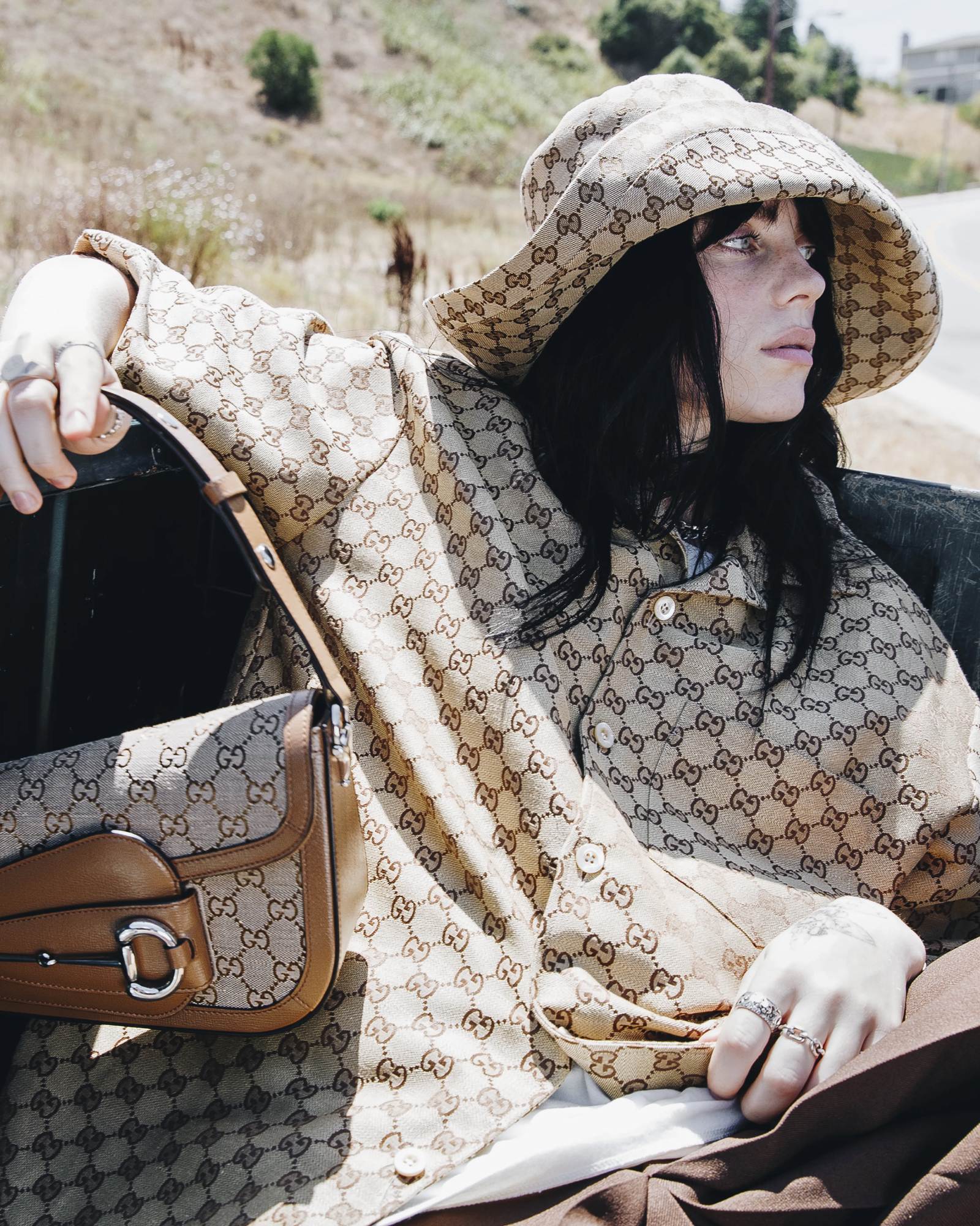 Proprio in questo clima, nelle ultime ore Gucci ha condiviso le immagini della nuova campagna, dedicata alla Horsebit 1955, a cui ha prestato il volto proprio Billie Eilish, in alcuni scatti che la ritraggono completamente ricoperta dal monogram Doppia G, proprio come in occasione del LACMA.