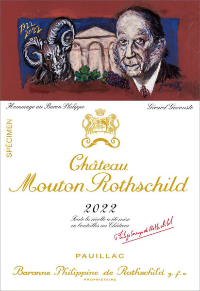 Gran parte del merito di questo successo è dovuto al barone Philippe de Rothschild, ed è per questo motivo che la maison ha deciso di ricordare il centenario dal suo insediamento presso l’azienda impreziosendo le bottiglie dell’annata 2022 con un’esclusiva etichetta celebrativa. Intitolata “Hommage au Baron Philippe”, l’opera è stata realizzata dall’artista contemporaneo francese Gérard Garouste, e raffigura l’inconfondibile facciata della cantina di Pauillac affiancata da un ritratto del barone e un ariete, segno zodiacale di Philippe e icona dello Château.