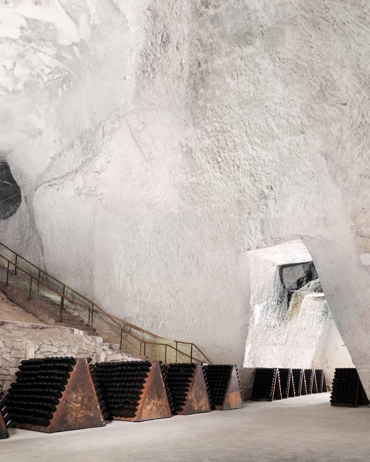 Tra gli esempi più significativi vi sono le cantine della Maison Ruinart, insediate nella collina di Saint-Nicaise dal 1877. Qui una rete di circa otto chilometri distribuiti su tre livelli scende fino a 38 metri di profondità; le pareti di gesso, di un bianco luminoso, restituiscono con immediatezza la natura del terroir champenois e raccontano una parte essenziale del savoir-faire della maison.