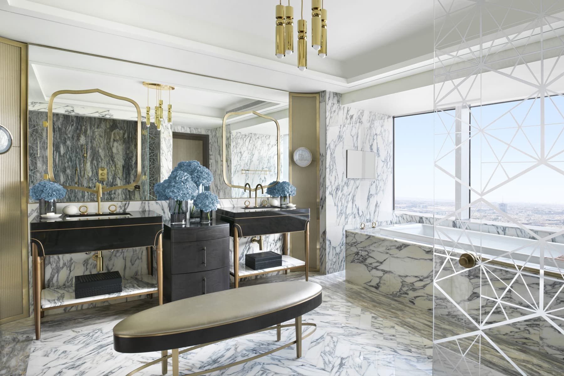 Il Kingdom Centre di Riyad, con i suoi 302 metri è di fatto il quinto palazzo più alto di tutta l’Arabia Saudita, nonché sede dello sfarzoso Four Seasons Hotel, dove CR7 alloggia da più di un mese. Nello specifico, l’ex Real Madrid ha optato per stabilirsi nella Kingdom Suite, la più grande dell’hotel, che si estende per ben due dei novantanove piani dell’edificio.