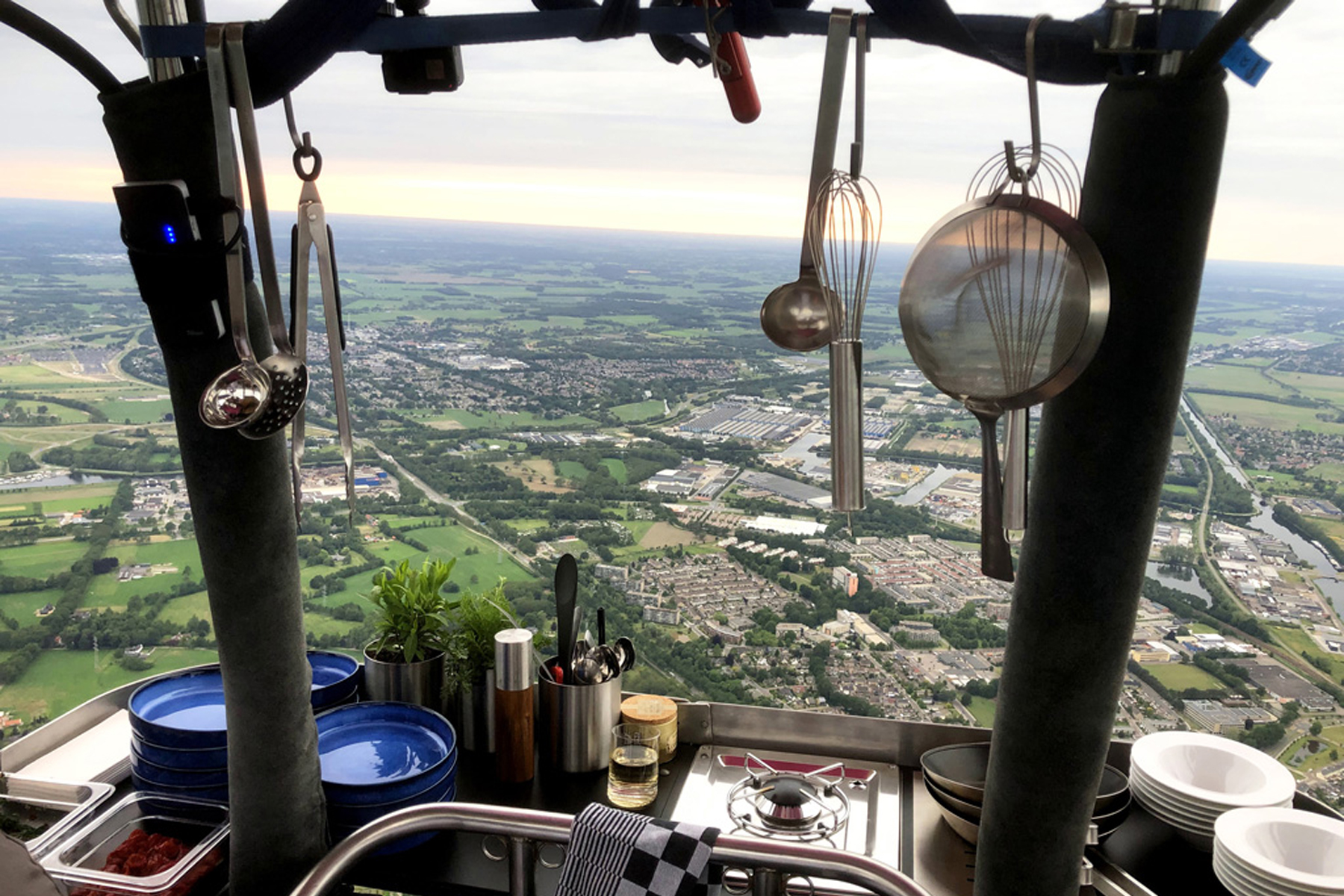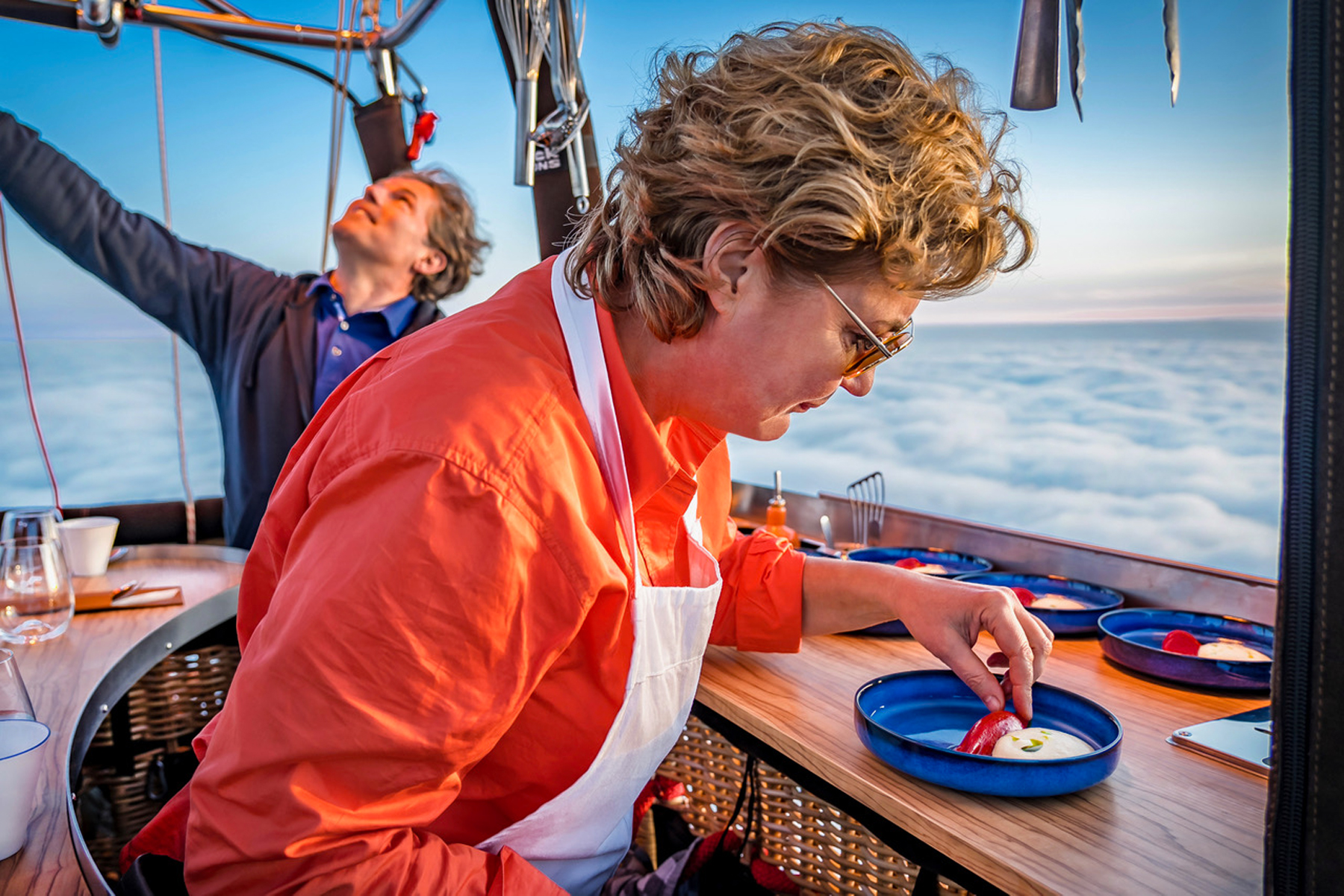 La pluripremiata chef Angelique Schmeinck è infatti l’ideatrice e la titolare del primo e unico ristorante in mongolfiera al mondo, il CuliAir Skydining, dove i fortunati dieci commensali possono gustare menu da tre portate ammirando le distese olandesi dall’alto.