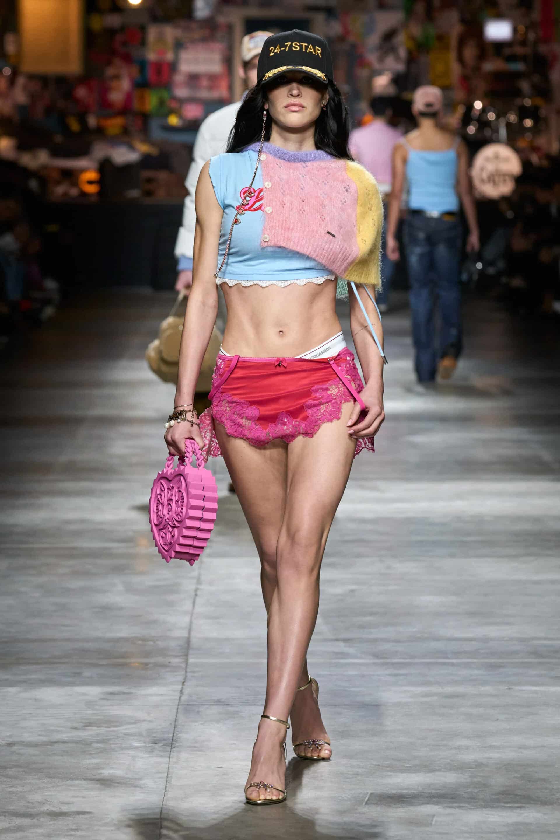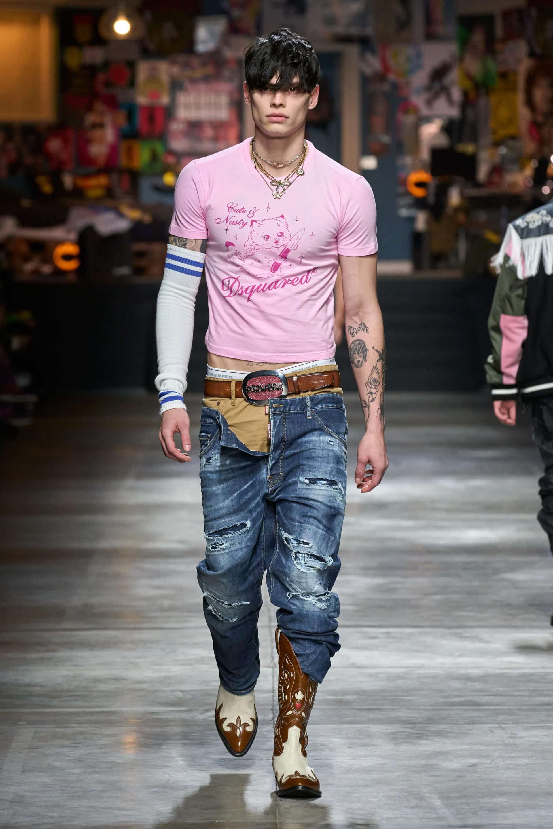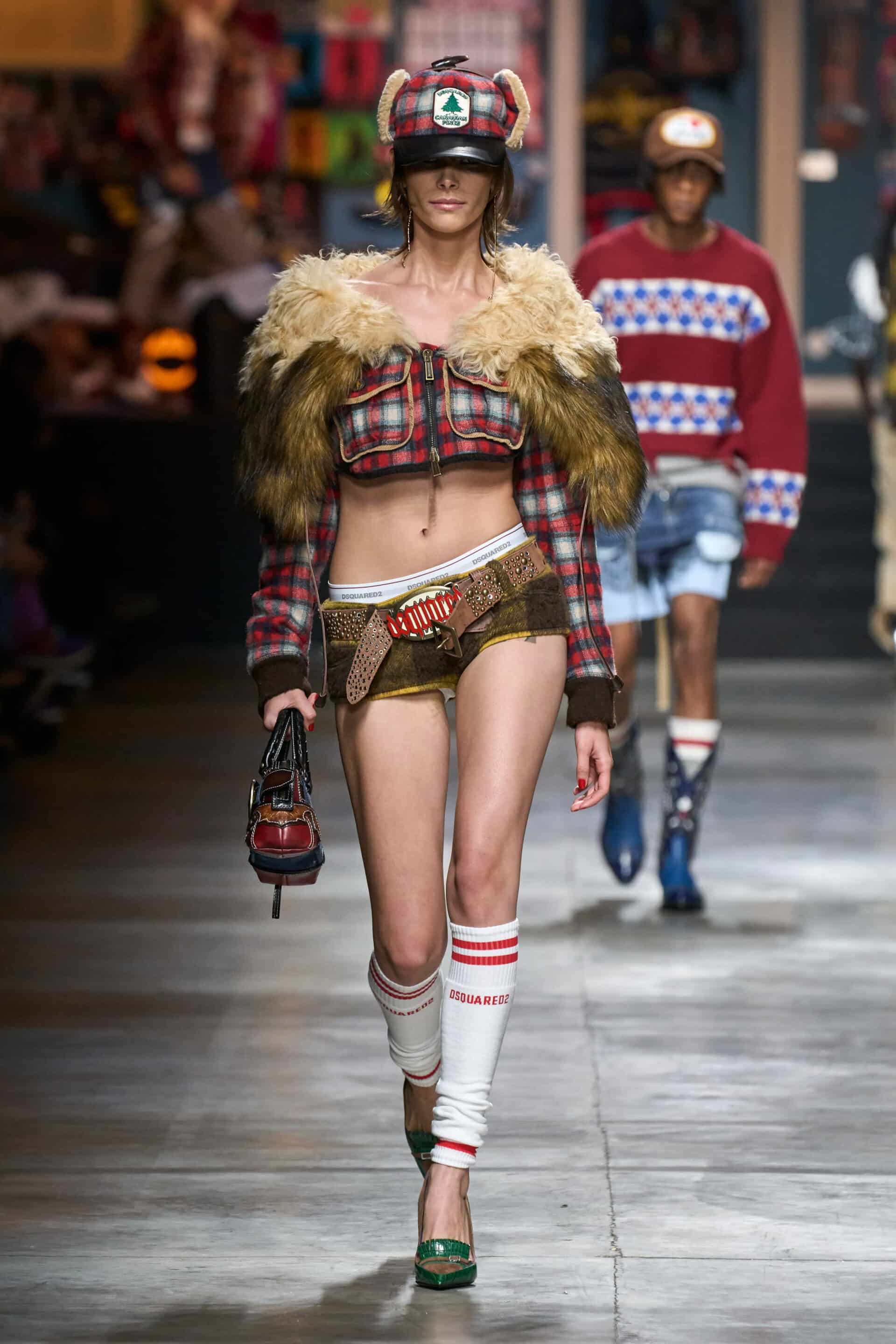 Per la collezione Autunno/Inverno 2023, Dsquared2 punta tutto sulla costruzione di un immaginario teen estremizzato sia nei tagli che nelle forme, in grado di attirare l’attenzione del pubblico con il suo stile eccentrico e senza filtri.