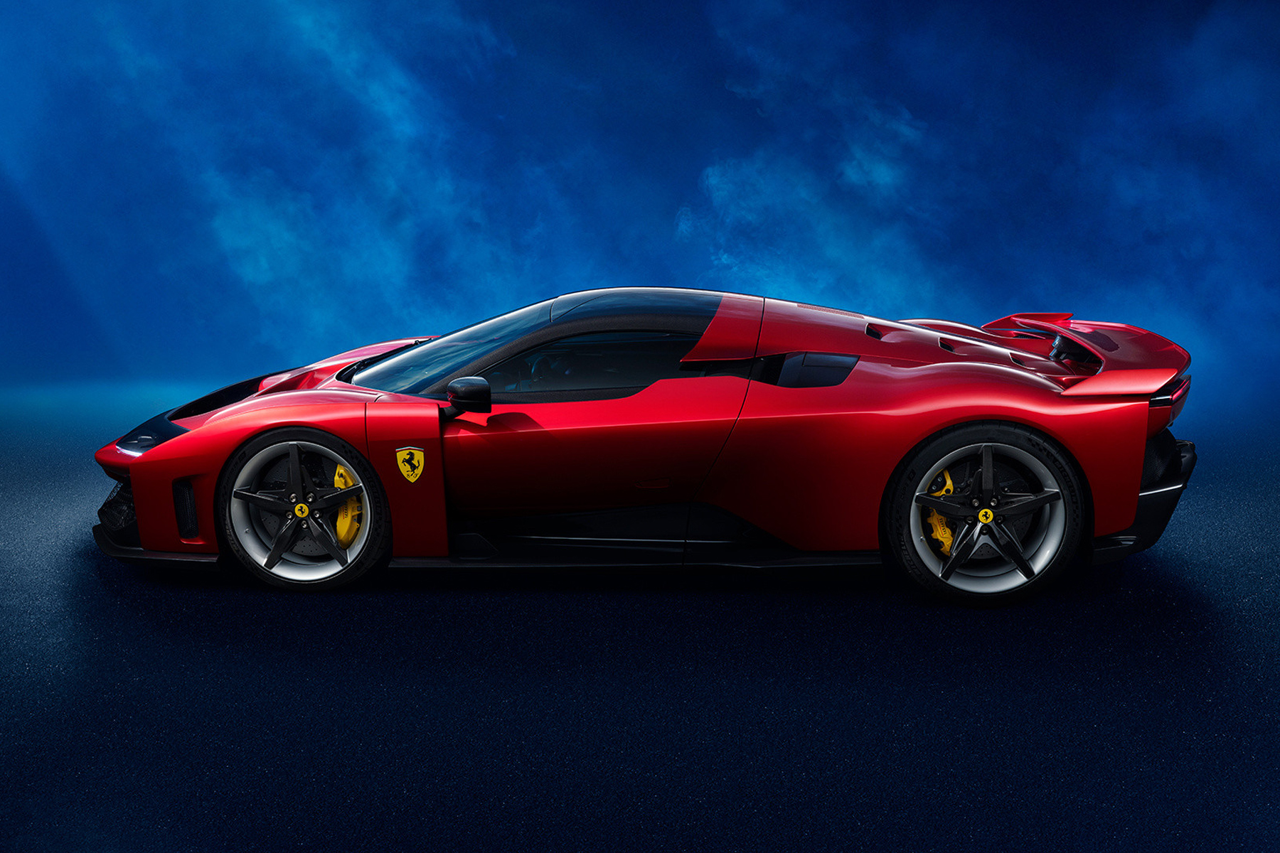La new-entry della casa italiana è dotata di un motore ibrido V6 tre litri biturbo da 900 cavalli associata a due motori elettrici indipendenti a batteria per un totale di altri 300 cavalli, raggiungendo appunto 1200 cv complessivi. Le prestazioni di questa vettura sono da record: da 0 – 100 km/h in 2.15 secondi, 0-200 km/h 5.75 secondi e 200-0 km/h in 98 metri, che a Fiorano – la pista di proprietà della Scuderia Ferrari dove si effettuano i test drive – risultano due secondi in meno rispetto all’attuale record.