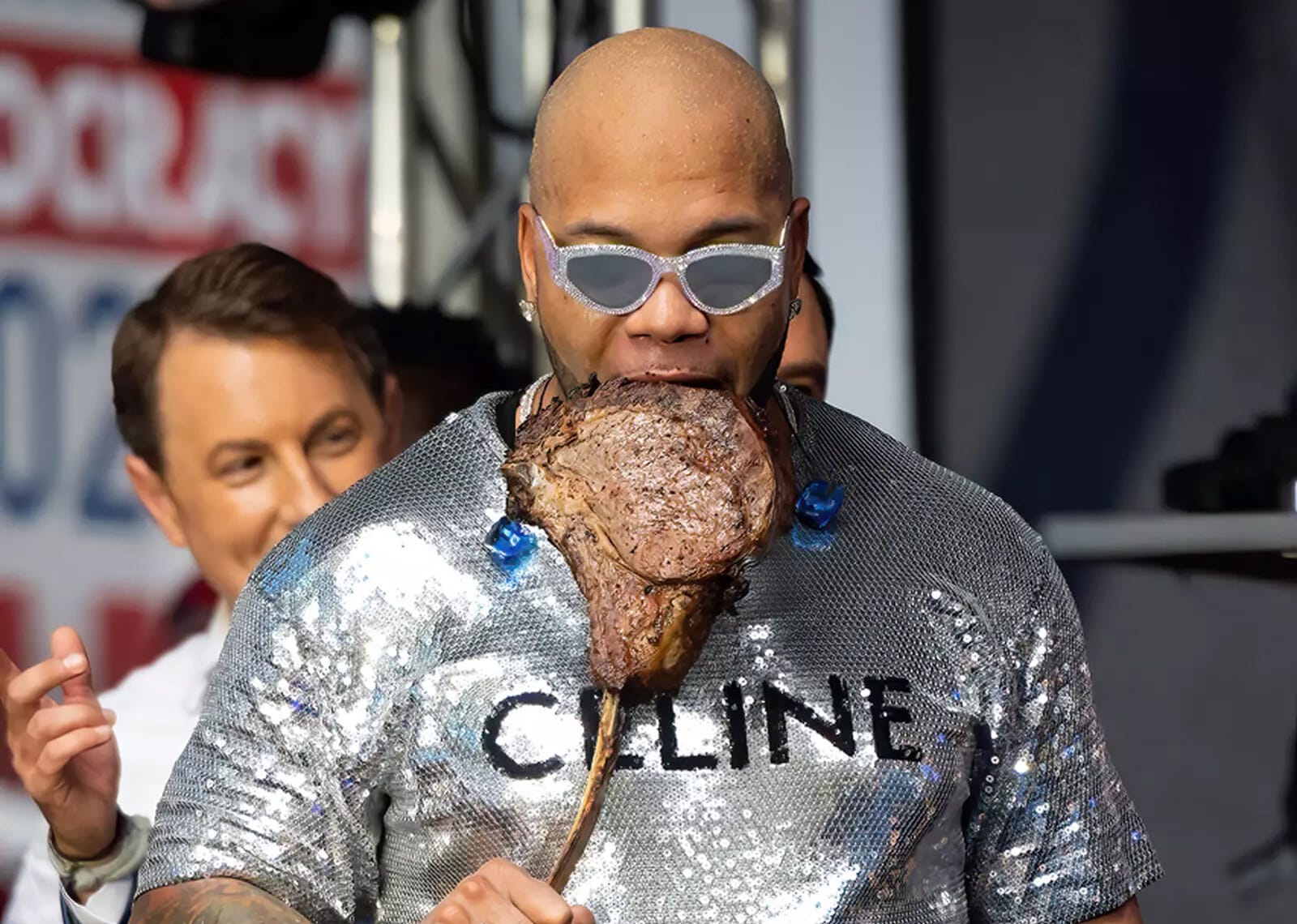 Flo Rida è tra gli artisti che più hanno influenzato il panorama musicale pop degli ultimi anni, con hit realizzate assieme a DJ di fama internazionale capaci di spopolare preso i club e le discoteche più rinomate al mondo. Nonostante il suo nome sia fuori dai riflettori da alcuni mesi, il rapper continua a sfoggiare uno stile inconfondibile: a tal proposito, nelle ultime ore l'artista è stato avvistato in una situazione del tutto particolare. L'8 luglio Flo Rida è infatti salito sul palco del concerto “All-American Summer” con un look a dir poco appariscente: durante l'esibizione, ha indossato una maglietta con paillettes da 1950 dollari di Celine, occhiali da sole Balenciaga e jeans biker. Per quanto il suo abbigliamento fosse incentrato più sull'aspetto dell'appariscenza che su un'armonia complessiva di tinte o materiali, la parte che più ha sorpreso il pubblico è stato il comportamento del rapper nel corso dello show.A metà del set e poco prima di cambiare gli occhiali da sole con un altro paio, Flo Rida ha sgranocchiato il suo snack portatile: parliamo di una bistecca Tomahawk gigante, che ha mangiato con la facilità con cui comunemente si gusta un cono gelato. Il gesto ha destato un certo scalpore sui social, con gli utenti che hanno avuto modo di sbizzarrirsi commentando l'accaduto.
