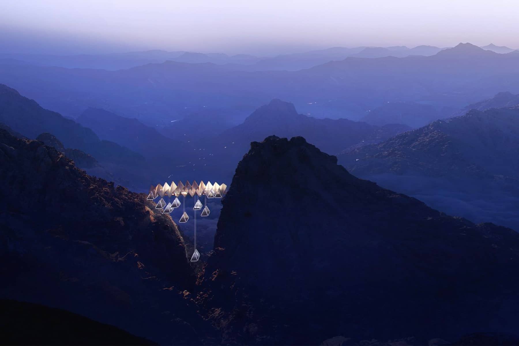 Lo studio di architettura e design urbano Ardh Architects di Dubai ha sviluppato un concept di campeggio intrigante e futuristico. Un sistema di tende trasparenti sospese nel vuoto tra le montagne, chiamato “Floating Retreat”, in grado di combinare lusso, comfort e una vista mozzafiato.