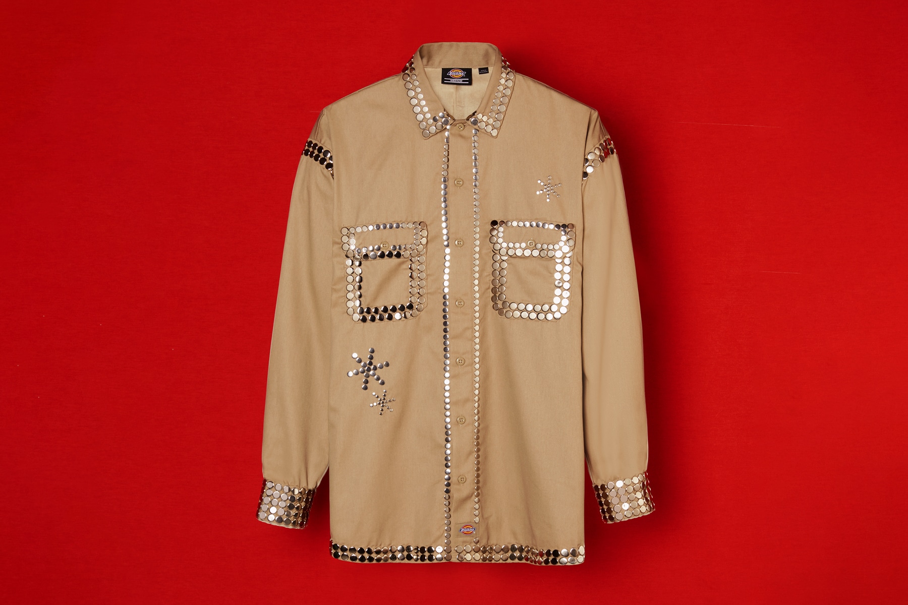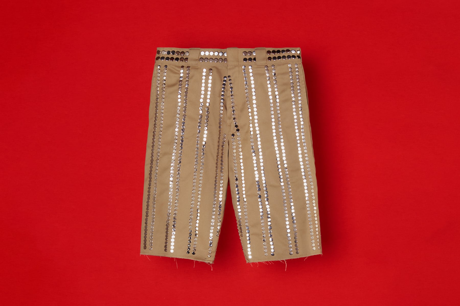 A completare la linea fanno poi la propria comparsa una camicia da lavoro e dei pantaloncini bermuda: i due capi sono accostati in funzione di un’estetica più casual rispetto a quella del completo principale e riportano borchie in sezioni limitate della superficie.