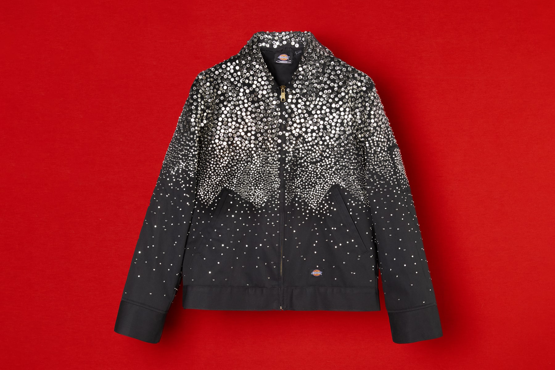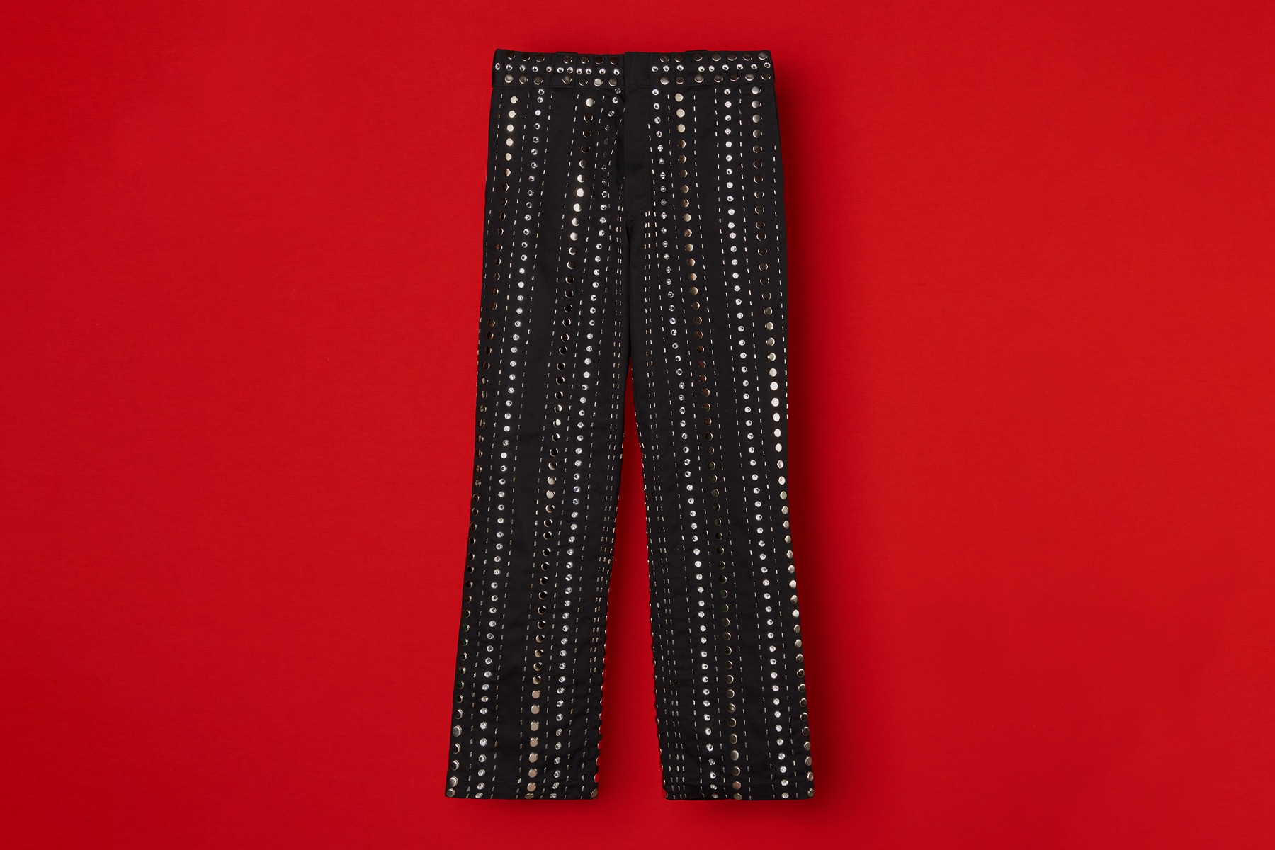 Tra questi figurano la giacca Eisenhower e i pantaloni 874, entrambi aggiornati per l’occasione attraverso una serie di borchie e occhielli applicati a mano dagli artigiani della maison, e resi disponibili nelle varianti colore nero e beige: sebbene la struttura in twill di cotone e polipropilene rimanga invariata, le borchie donano un’idea di struttura all’iconica giacca Eisenhower, grazie a una disposizione irregolare che conferisce un inedito senso di movimento al capo. I due modelli Eisenhower “Corta” sono pensati per il pubblico femminile, mentre il completo Eisenhower-874 in taglio tradizionale si presenta in una versione unisex.