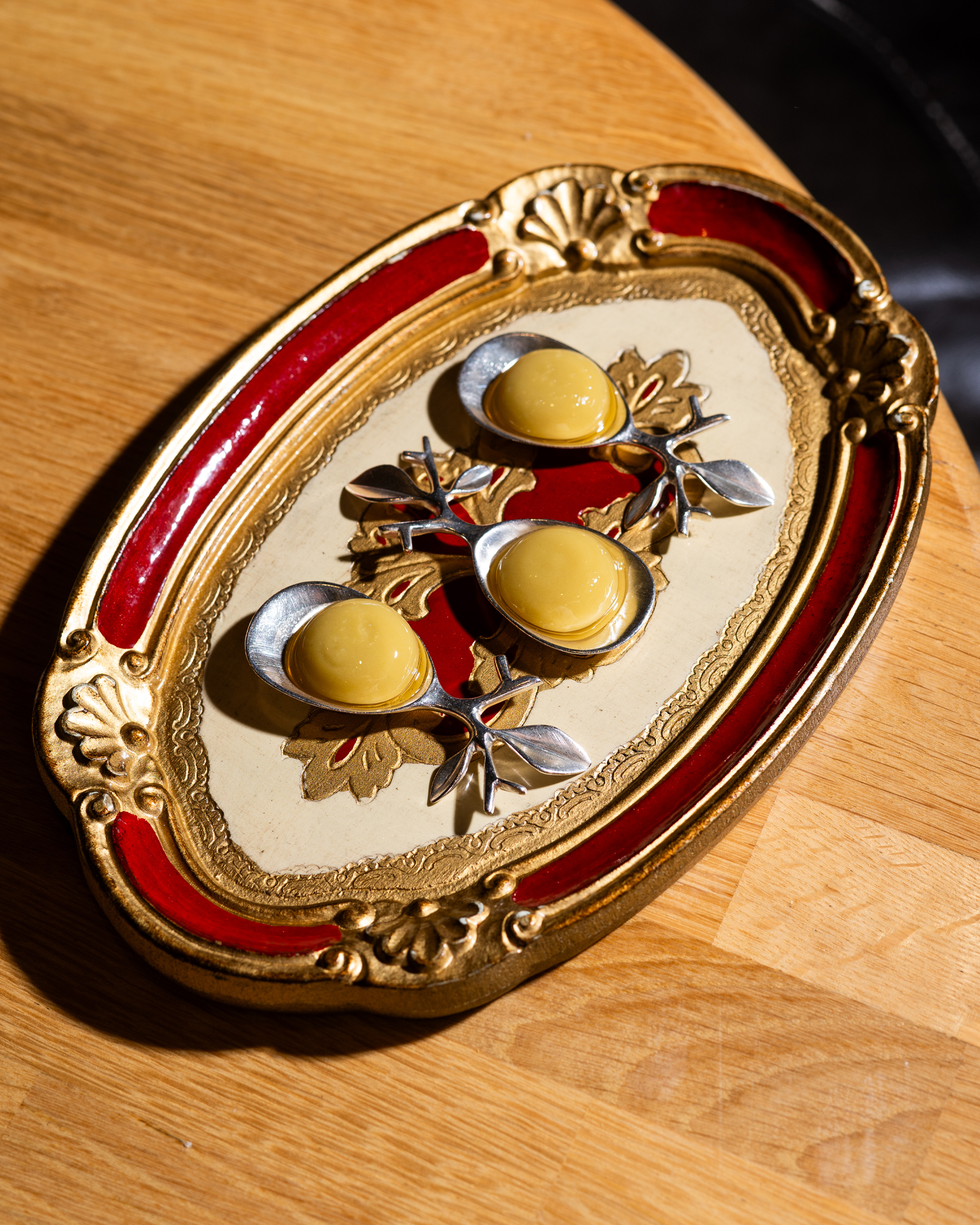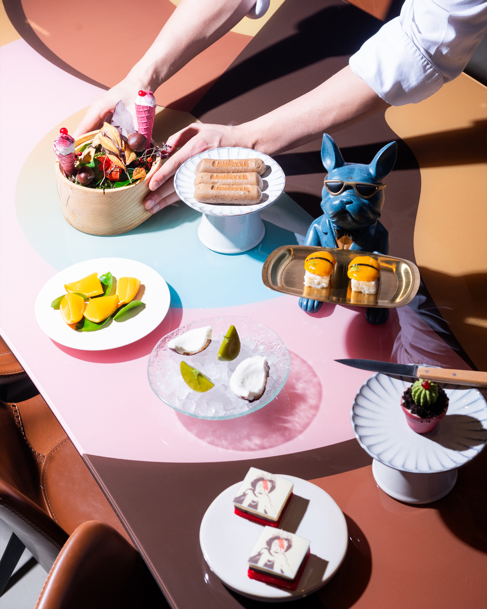 In generale, ci divertiamo nella preparazione dei dolci. Sono molto legato ai dessert; se non avessi fatto il cuoco, avrei fatto il pasticcere. Offriamo un linguaggio unico nel servire i nostri dessert: ciò che proponiamo qui non si trova altrove. Abbiamo impiegato cinque anni per raggiungere il livello attuale nella presentazione dei piatti. Non esiste un dessert principale, offriamo invece un’esperienza condivisa composta da tanti piccoli bocconi da gustare insieme. Abbiamo scelto questa formula perché molte persone faticavano a finire porzioni più grandi di dolci. Così abbiamo deciso di portare tutto al centro del tavolo: tanti piccoli assaggi per permettere a chi lo desidera di continuare a mangiare senza imbarazzo per chi si ferma. Questo approccio ha reso le nostre tavole fotografiche e attraenti per gli ospiti. Un processo ancora in corso che fa parte della nostra identità culinaria.
