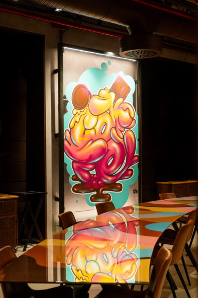 Durante una delle nostre prime conversazioni, mi ha rivelato di non mangiare molto e spesso si è anche sorpreso di quanto invece io mangiassi. La sua visione per il ristorante era chiara: voleva uno spazio onirico e astratto, qualcosa di completamente nuovo. La scelta dei colori e degli arredi è stata fondamentale. La strategia di Ferretti è stata decisiva; senza la sua impronta creativa, avremmo probabilmente visto versioni simili del ristorante in altre città italiane. Invece, “Condividere” rimane unico nel suo genere. Ecco perché ha un valore incredibile.