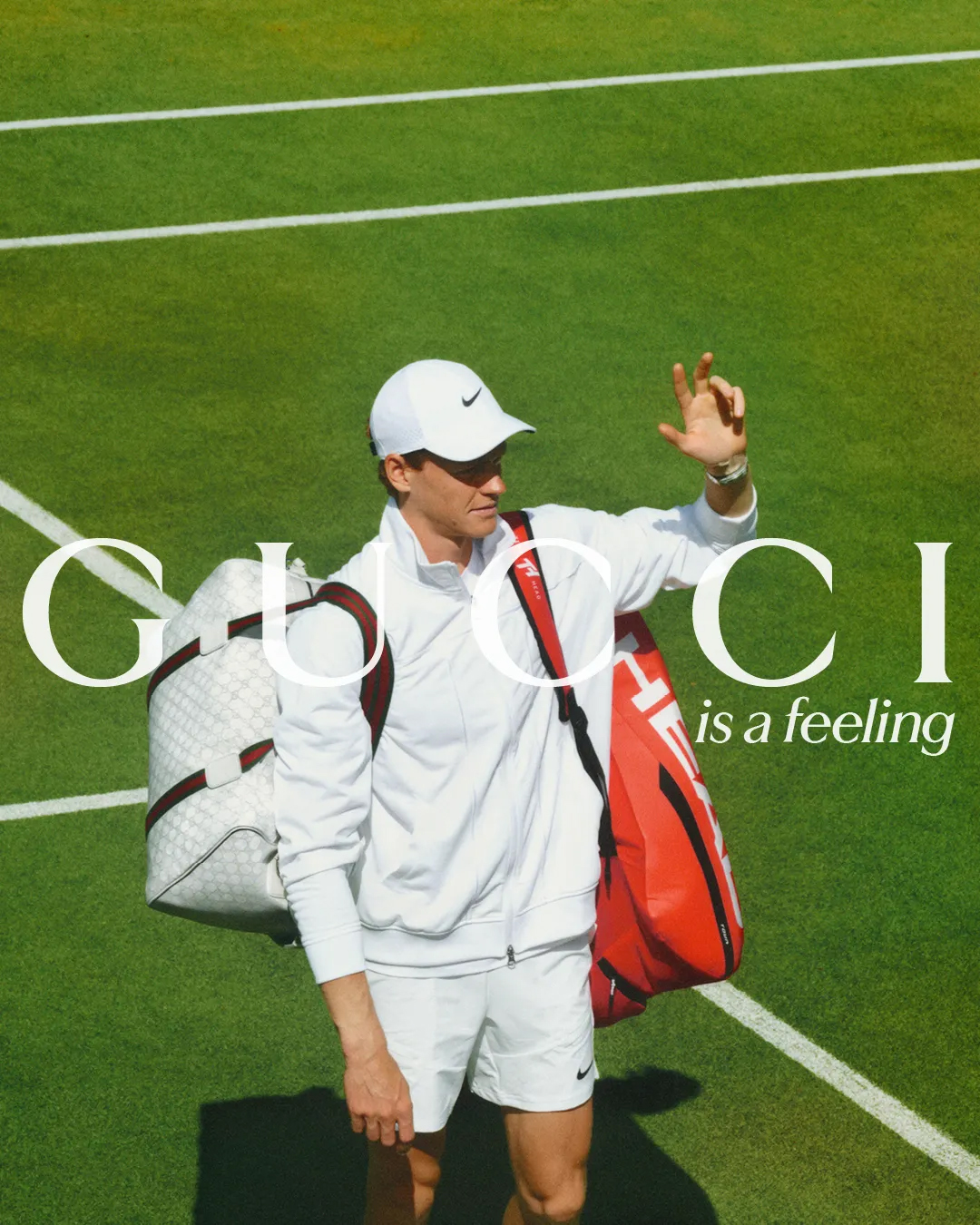 Jannik Sinner è il volto della nuova campagna “Gucci is a Feeling”: il progetto fotografico, scattato da Riccardo Raspa e diretto da Riccardo Zanola, è stato realizzato in stile reportage, seguendo il tennista italiano sul campo da tennis durante i suoi tornei più importanti in giro per il mondo, e mostra le borse realizzate dalla maison e sfoggiate dall’atleta durante gli incontri su terra rossa, erba e cemento.