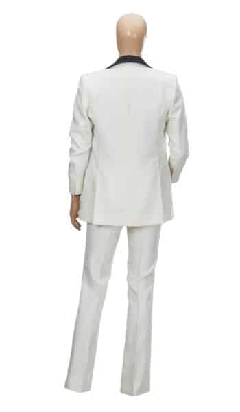 Composto da tre pezzi individuali: giacca in poliestere dai revers ampi con impunture, tasche oversize, gilet e pantaloni, il look rappresenta uno dei due soli esemplari utilizzati durante la produzione del film. Proprio per la sua esclusività, si prevede che il completo monocromatico possa raggiungere i 200.000 dollari.