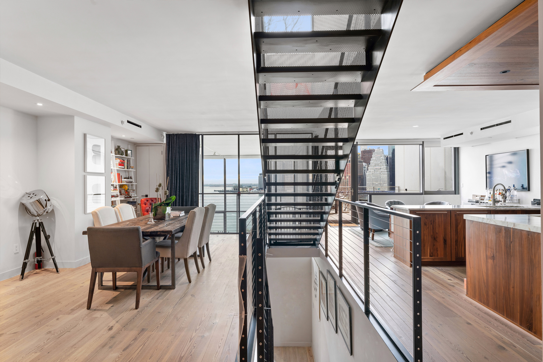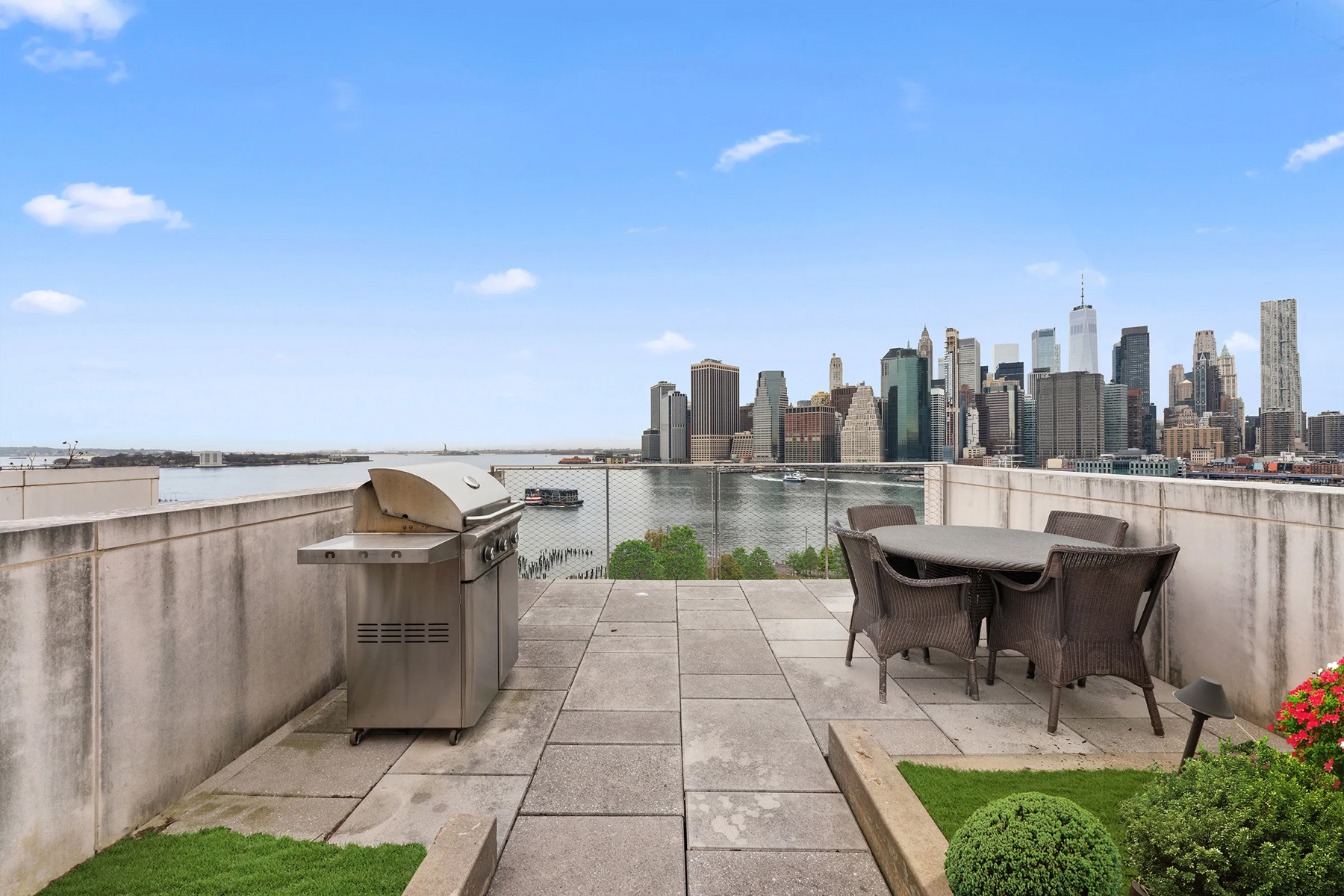 Il vero fiore all’occhiello di questo attico è però costituito dai 185 metri quadrati di spazio esterno che occupano i restanti due piani del triplex, e che includono un esclusivo rooftop privato in grado di regalare una vista mozzafiato sull’East River, sul Brooklyn Bridge Park e su Lower Manhattan.