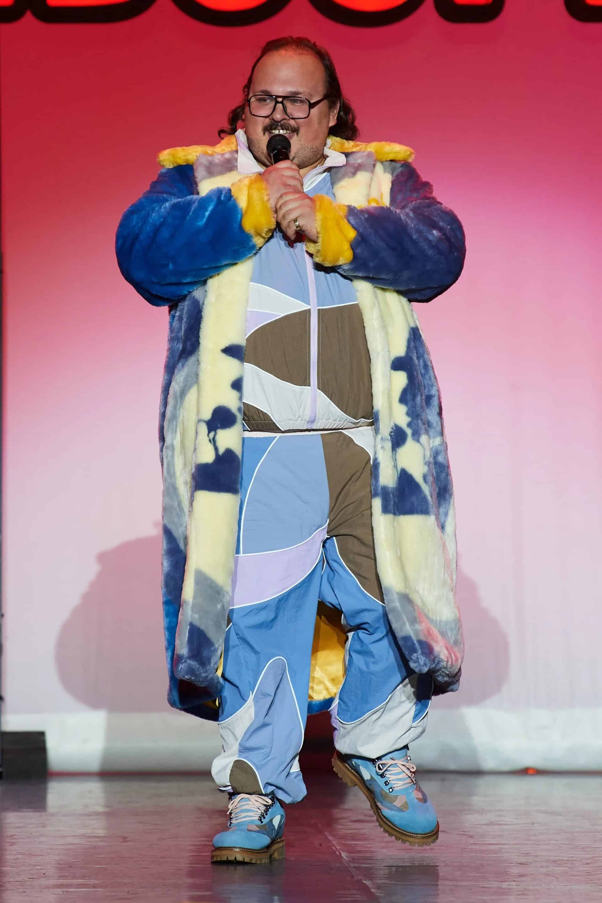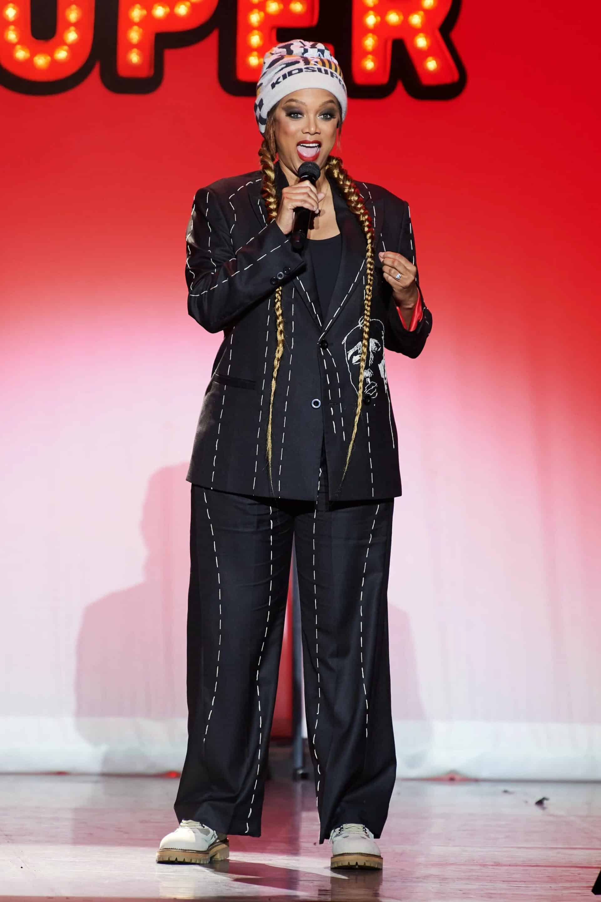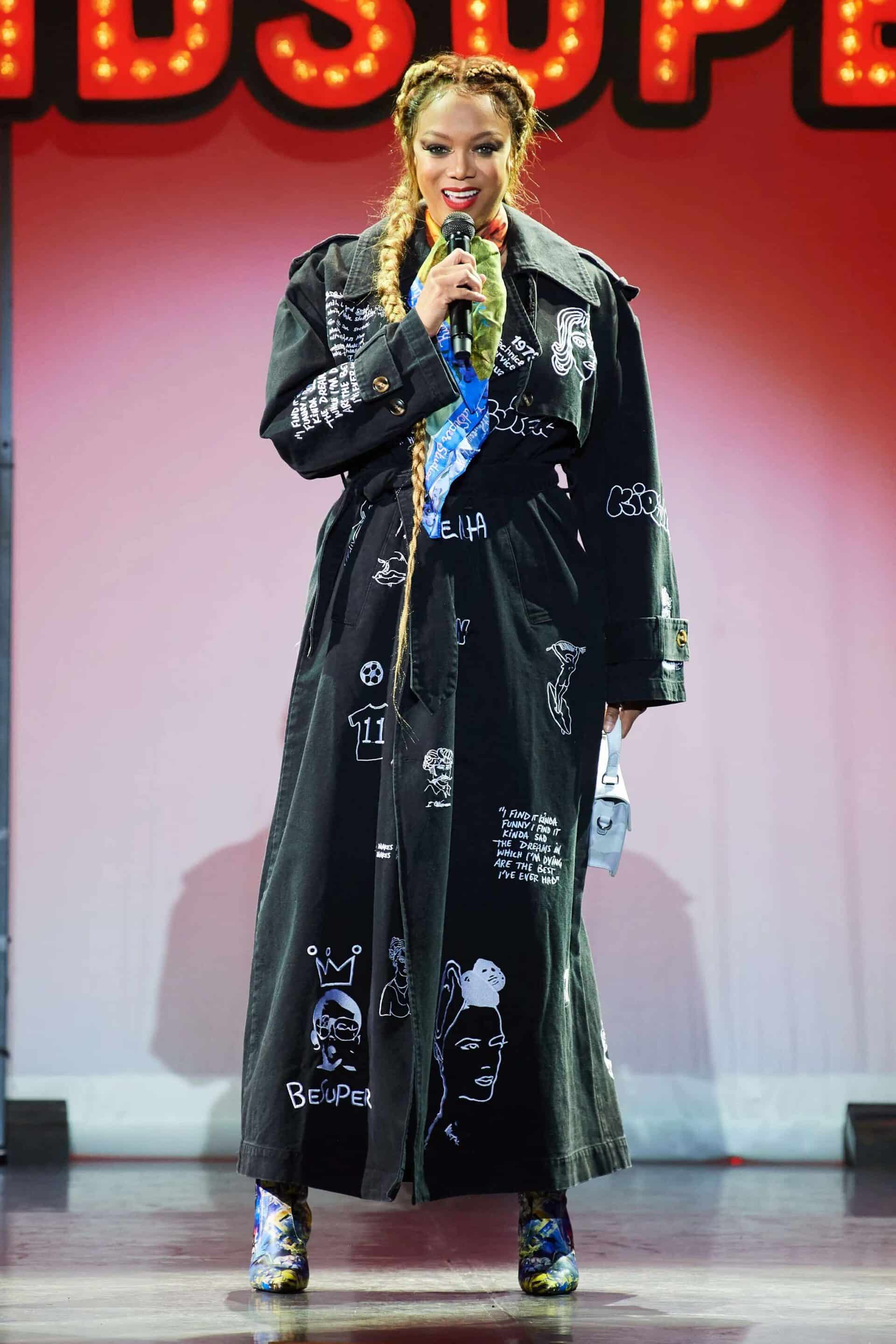 Il runway show tenuto nella serata di sabato nell’ambito della Paris Fashion Week è stato condotto dalla top model Tyra Banks, che ha coordinato in maniera magistrale uno spettacolo di cabaret con la partecipazione di ben otto comici, di cui rispettivamente i comici Yvonne Orji, Jeff Ross, Stavros Halkias, Andrew Santino, Andrew Schultz, Theo Von, Fary e Matteo Lane, che indossavano i capi della nuova collezione firmata KidSuper.