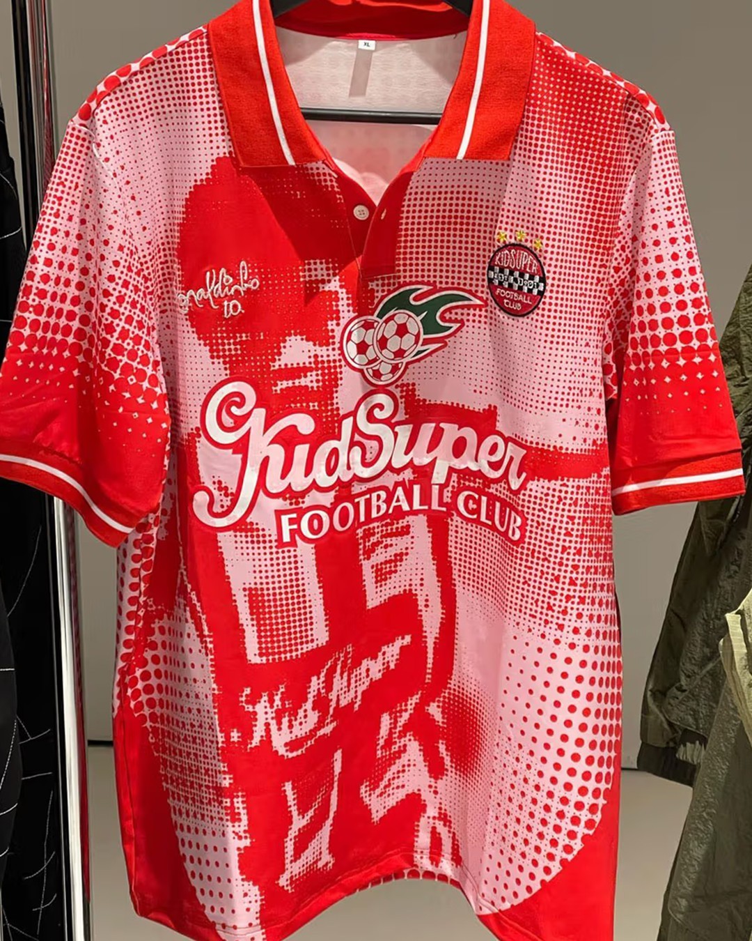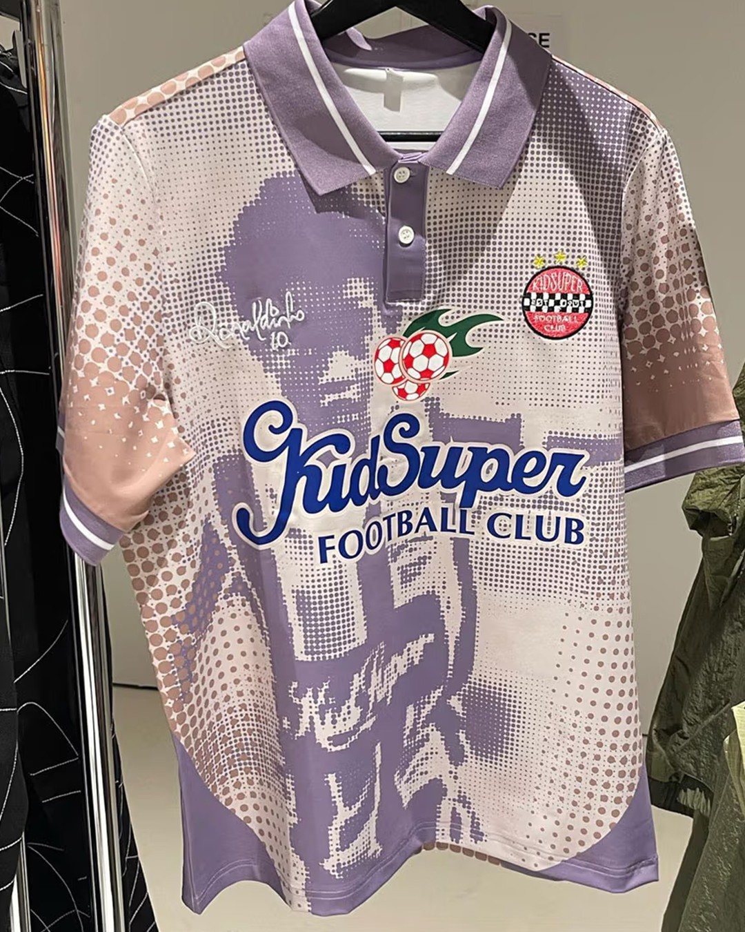 Oltre a ciò, lo stemma KidSuper Club trae ispirazione dal logo della squadra d’infanzia dell’ex calciatore, il Gremio: il design delle maglie presenta la scritta “KidSuper Football Club” nell’area dello sponsor principale, mentre sul lato destro del petto è presente una replica ricamata della firma dell’atleta.