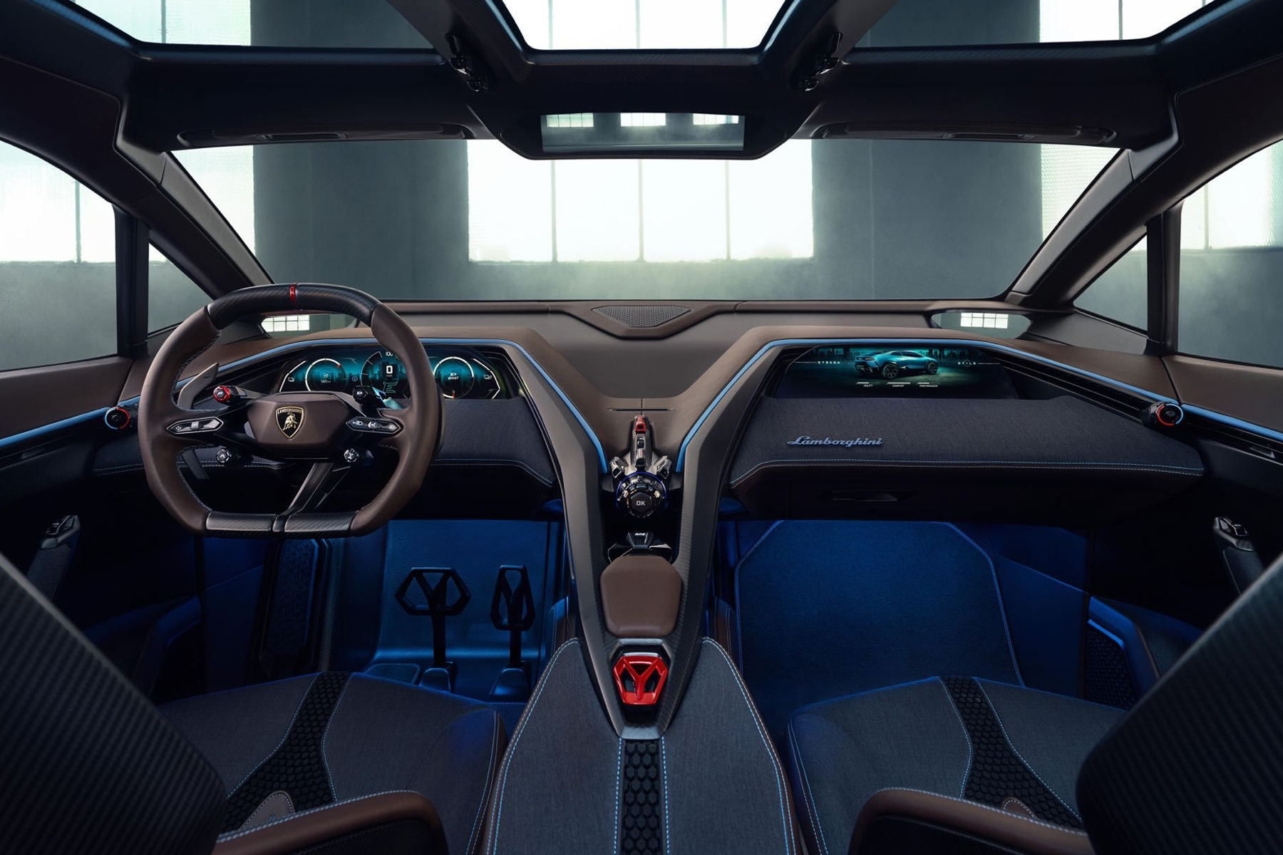 Gli interni di Lamborghini Lanzador, accessibili dalle sole due porte della vettura, sono realizzati in materiali riciclati provenienti dell’Italia, e non si discostano particolarmente dall’estetica tipica della casa bolognese, come dimostra l’abitacolo in stile cockpit . Sia davanti che dietro sono poi presenti display digitali widescreen, mentre se necessario i sedili posteriori possono essere abbattuti per aumentare lo spazio di carico.