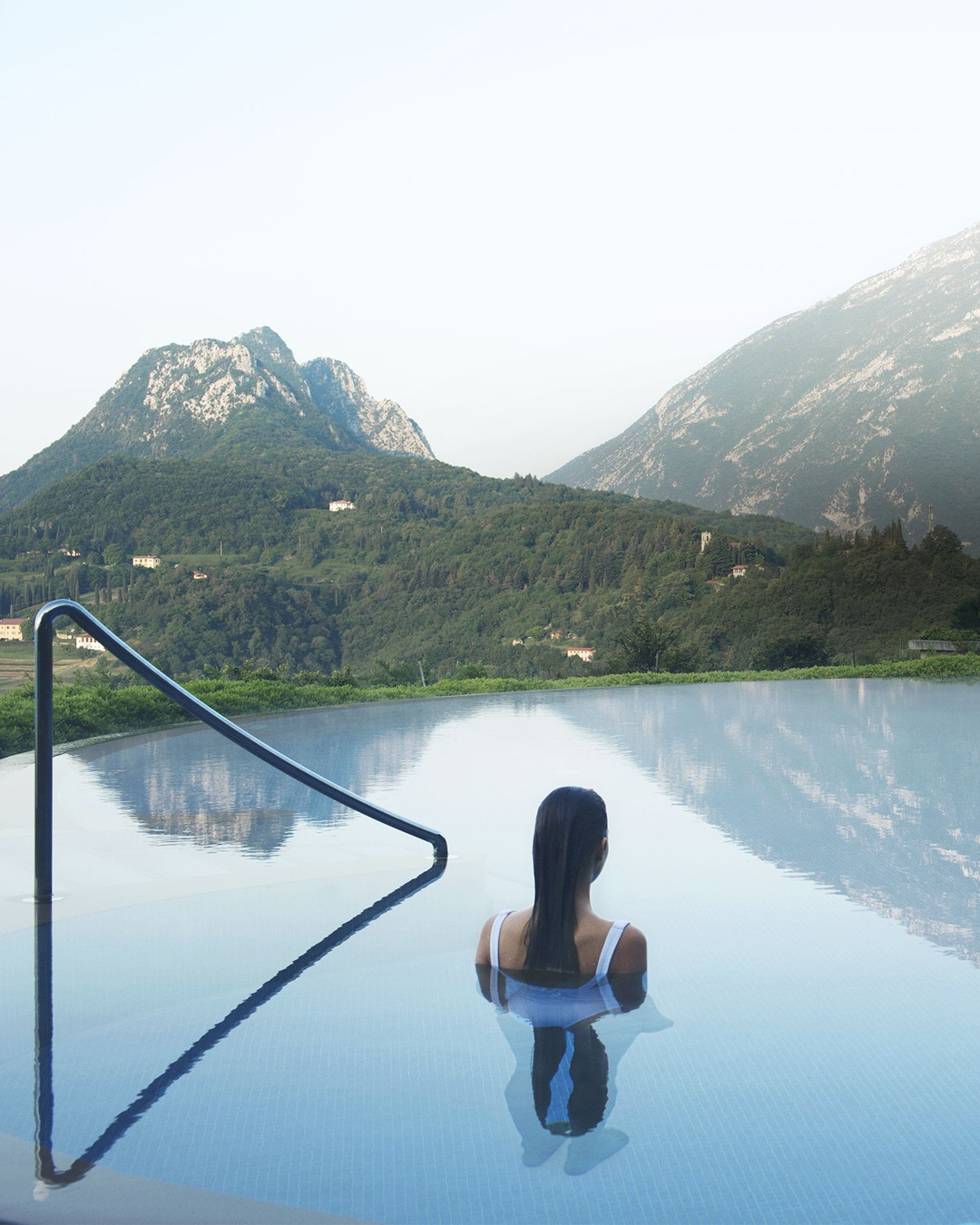 Lusso, benessere e natura si incontrano nella struttura inaugurata nel 2008 grazie all’intuizione di Domenico Alcide e Liliana Leali, intenzionati a creare un retreat che fosse un punto di riferimento nel mercato internazionale del wellness di lusso (esperienza replicata nel 2019 con l’inaugurazione di un complesso nel cuore delle Dolomiti, a Pinzolo). L’obiettivo è stato raggiunto con il centro, dotato di una spa di 4.300 metri quadrati, immersa nelle colline ricoperte di uliveti secolari, vigneti e boschi mediterranei a pochi passi da Gargnano, dove è possibile godere di un panorama mozzafiato sul Lago di Garda.