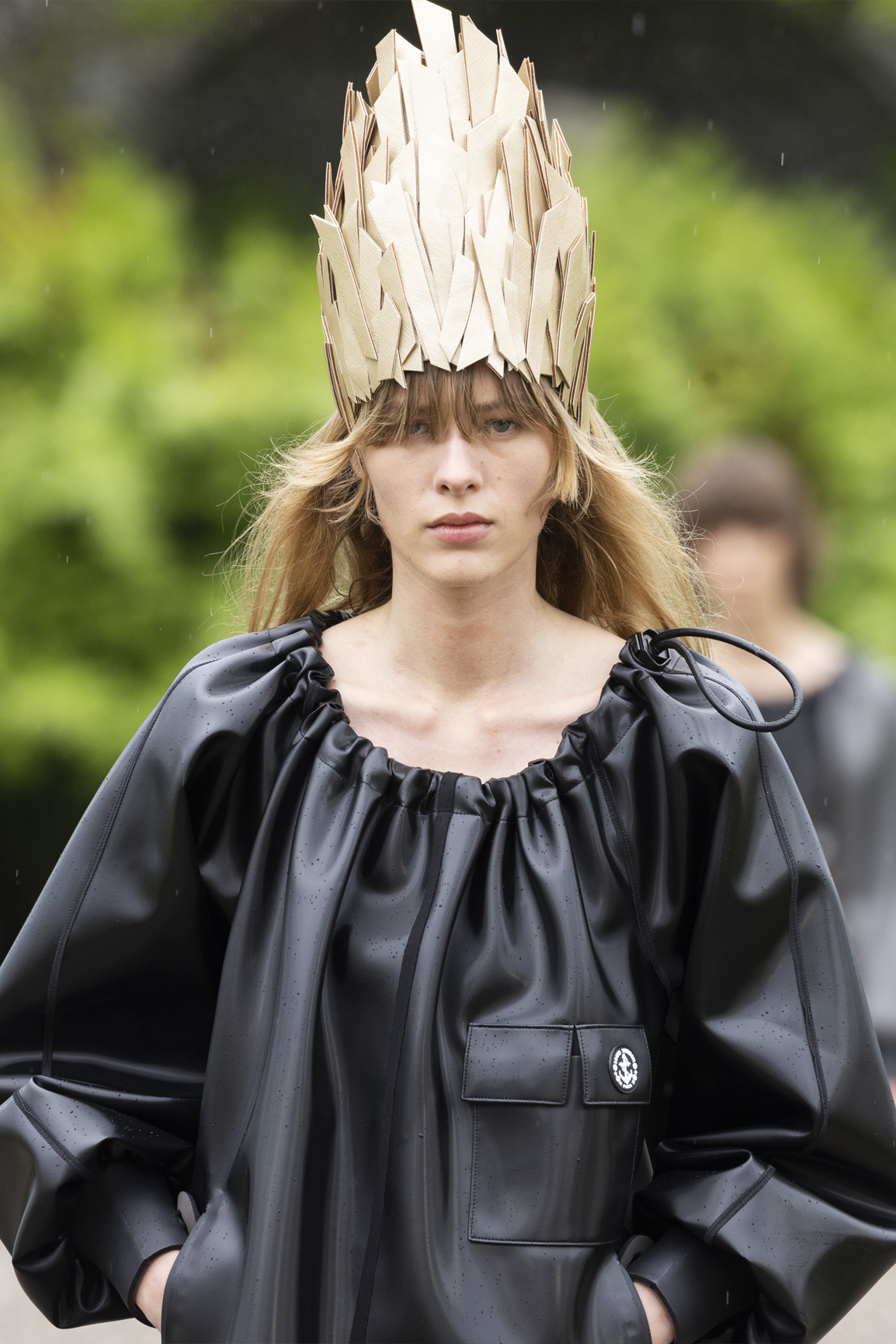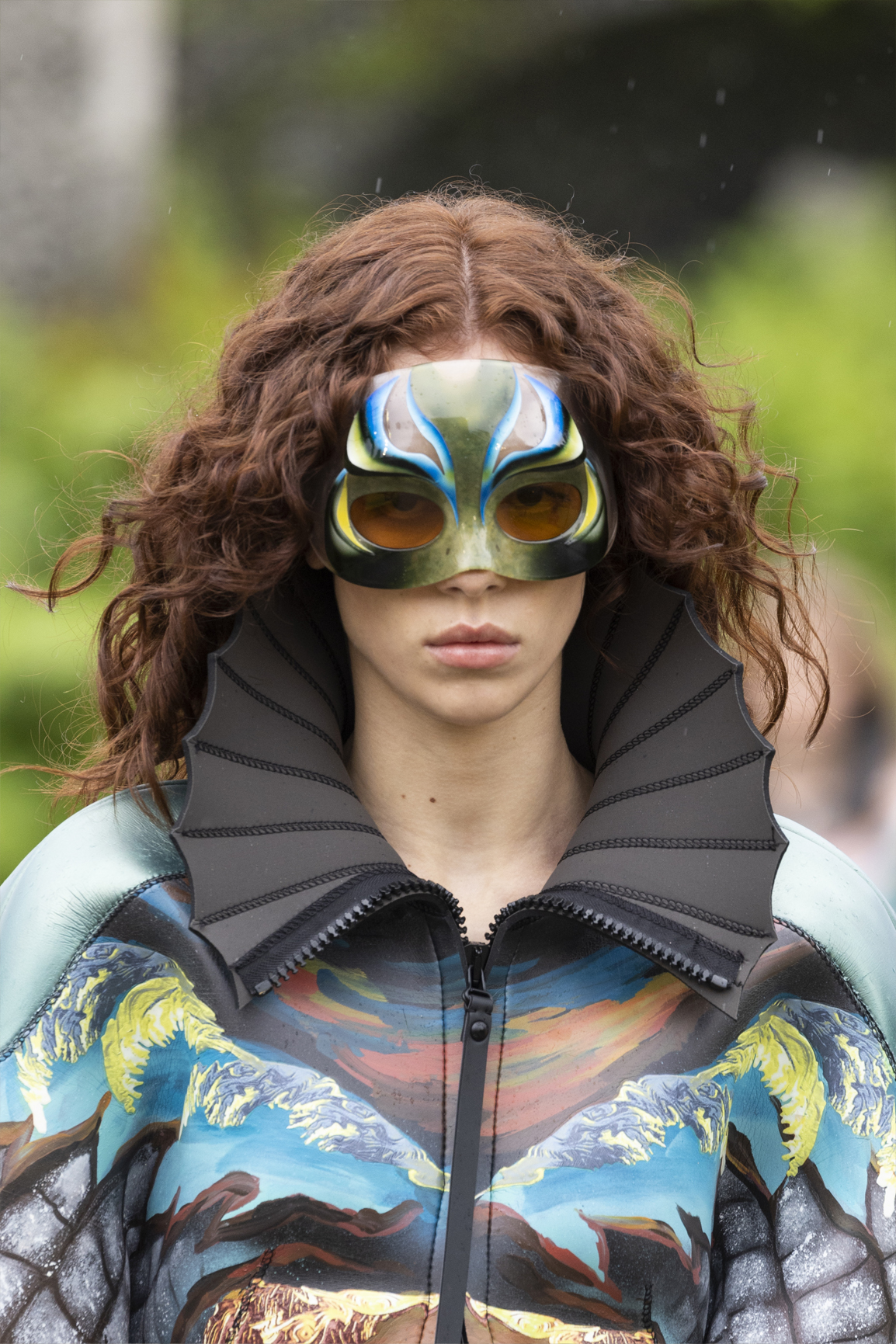 Come suggeriscono le note dello show condivise dalla maison, l’obiettivo della collection è quello di “dare origine a racconti contemporanei, popolati da creature alla deriva che abbandonano le dimore acquatiche per la scoperta di meraviglie terrestri”.