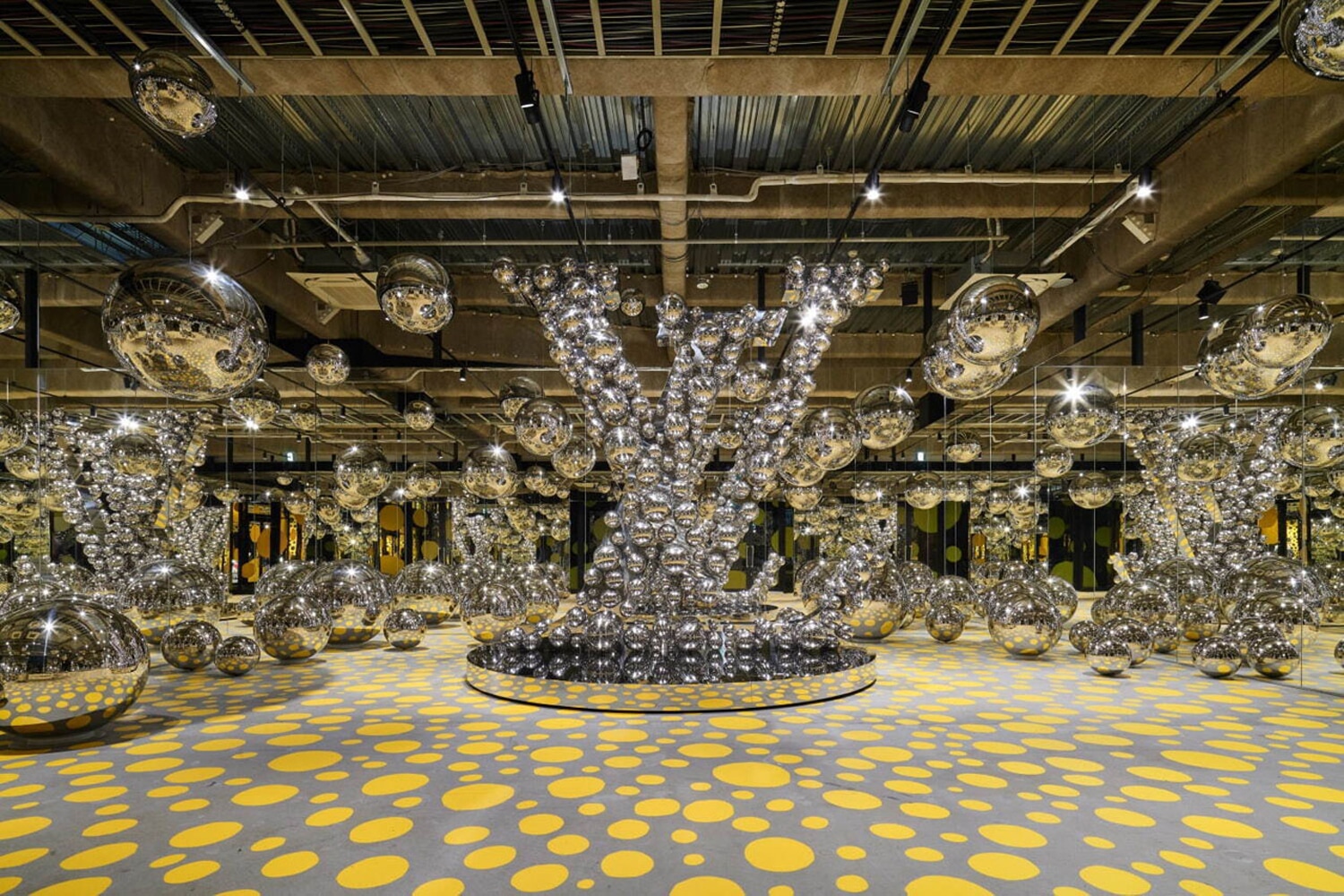L’esterno del temporary store rappresenta già di per sè un’autentica opera d’arte, ricoperta di pois gialli di tutte le dimensioni. L’interno, invece, ospita sfere a specchio, un logo argentato del brand e un’imponente statua della stessa Yayoi Kusama, con i muri e pavimenti che riprendono i pois presenti sugli esterni.