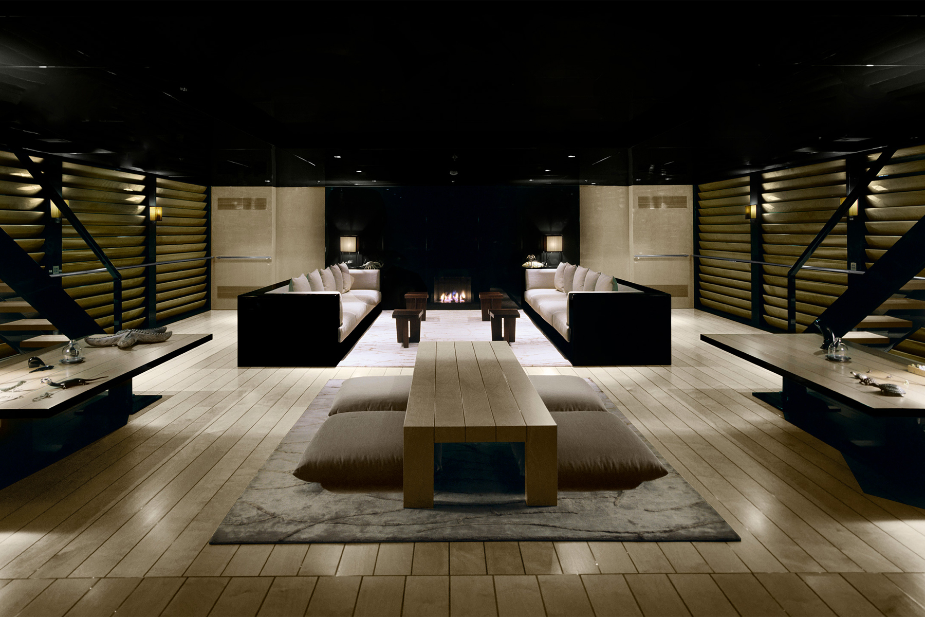 Proprio la zona living è tra le protagoniste dell’imbarcazione: questa si estende per la maggior parte del ponte principale, e può vantare due divani Armani Casa realizzati su misura, un tavolo in legno di betulla, una veranda a poppa e un’area riservata al camino elettrico.