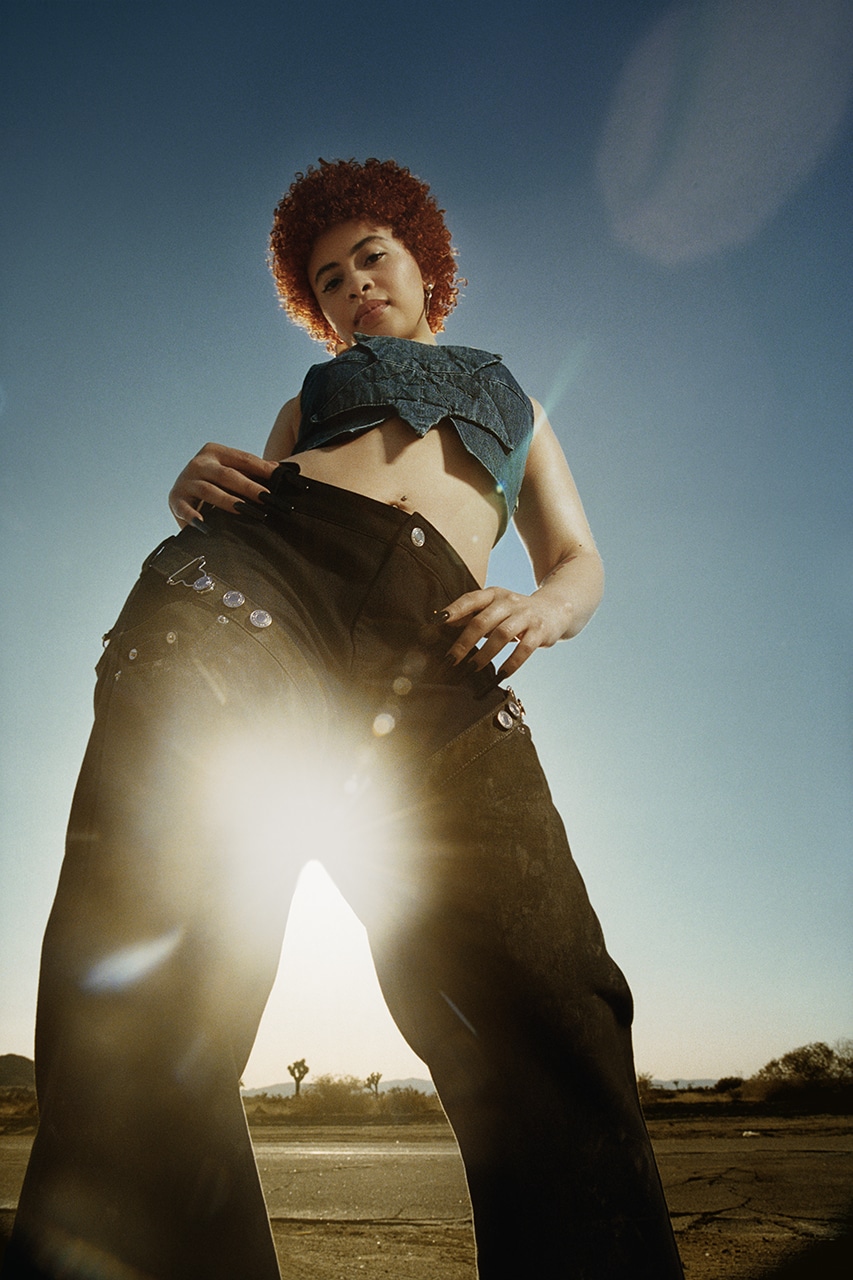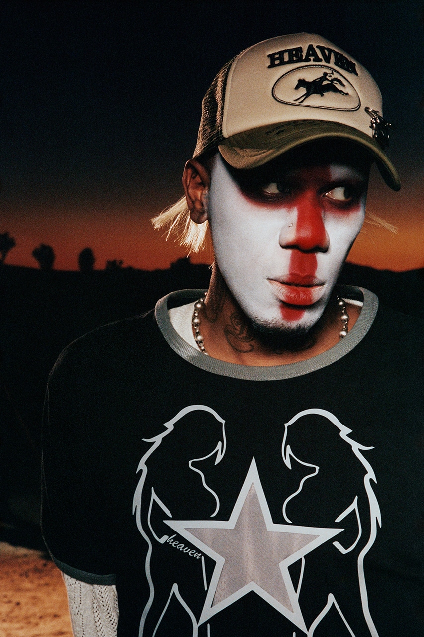 Mentre Uzi ha sfoggiato pantaloni con sezioni sovrapposte, una jersey da hockey con branding “Heaven”, una felpa con cappuccio e stampe frontali, e una collana a forma di manette intrecciate, la nuova leva della drill britannica Ice Spice ha elevato ulteriormente l’estetica della campagna, indossando un miniabito con stampa a stelle e stivali con plateau, il tutto rigorosamente abbinato alla nuova borsa Heaven’s cufflinks (un remake dell’iconica borsa di Paris Hilton dei primi anni 2000).