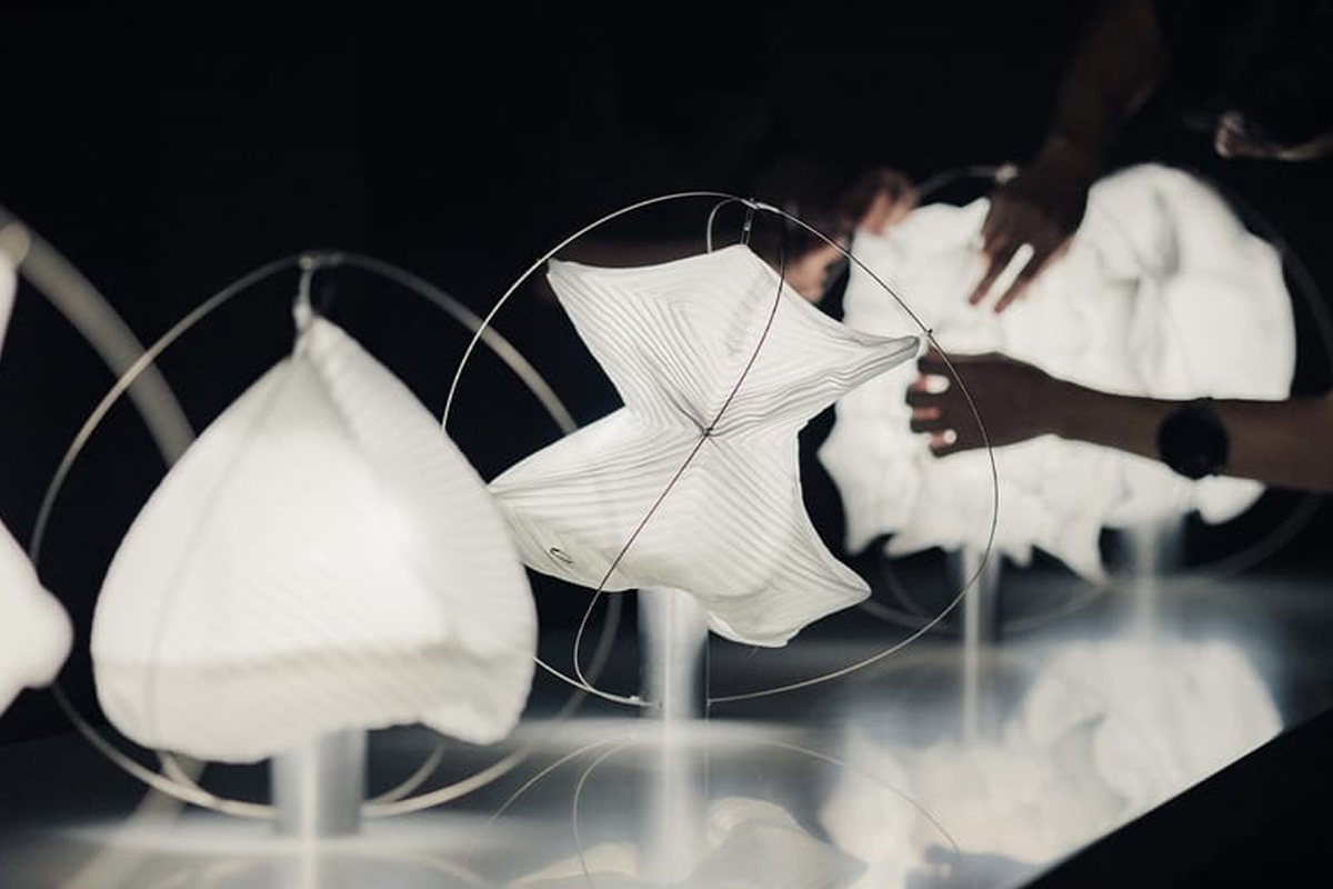 Un filo di tessuto e un filo di metallo si intrecciano nel nuovo progetto nato dalla collaborazione tra Atelier Oï e A-POC ABLE ISSEY MIYAKE, con l’obiettivo di esplorare il concetto di illuminazione.