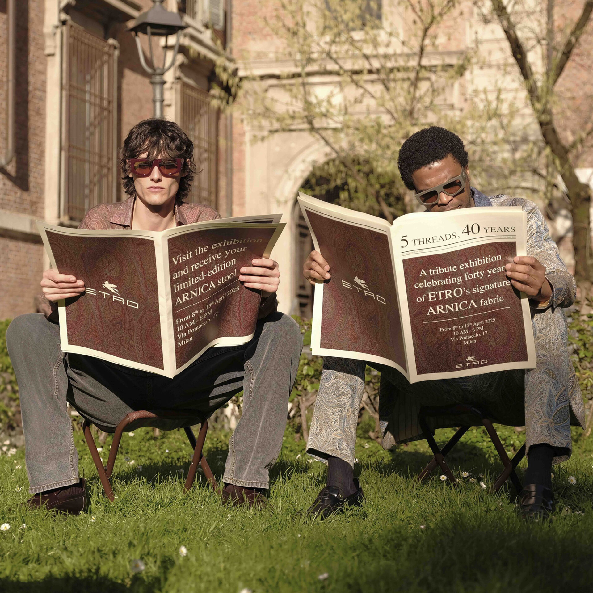 Etro celebra Arnica, materia e pattern nato dall’intreccio di cinque vivaci fili (giallo, verde, rosso, turchese e bianco), la cui trama continua a scrivere la storia del brand. Un viaggio che, partendo dall’origine, attraversa la fase progettuale e culmina nella realizzazione di oggetti senza tempo, il cui racconto si snoda attraverso tre stanze, dove il tappeto diventa il fil rouge