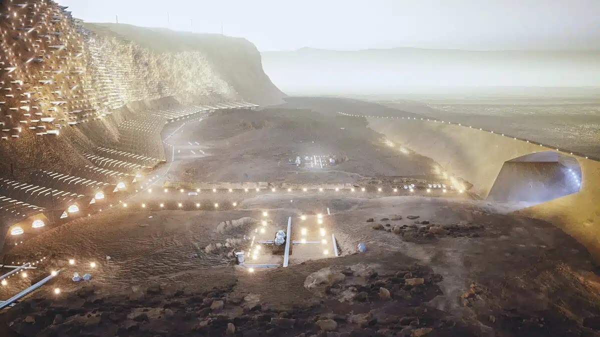 Cosa servirà alle persone per vivere in sicurezza su Marte? Lo studio di architettura Abiboo ha stabilito recentemente i più importanti requisiti pianificando vari modi per proteggere i residenti dalle radiazioni. I coloni avranno infatti bisogno di un deus ex machina protettivo affinché le persone possano arrivare fino a Marte senza essere irradiate. Inoltre i residenti dovranno essere in grado di produrre colture alimentari per sostenere la vita sul pianeta.Secondo i programmi recenti, le persone vivranno in terrazze sulla scogliera e visiteranno solo la superficie più esposta quando necessario. Viaggeranno in treno e autobus fuori dalla scogliera e con enormi sistemi di ascensore all'interno di essa.Abiboo immagina che la città richieda rifornimenti dalla Terra solo per un tempo limitato prima di diventare completamente autosufficiente. Se tutto procede secondo i piani, i lavori di costruzione della città potrebbero iniziare nel 2054 per riuscire a ospitare i primi terrestri entro il 2100.