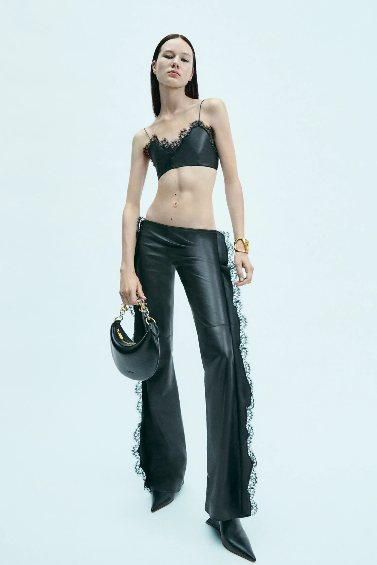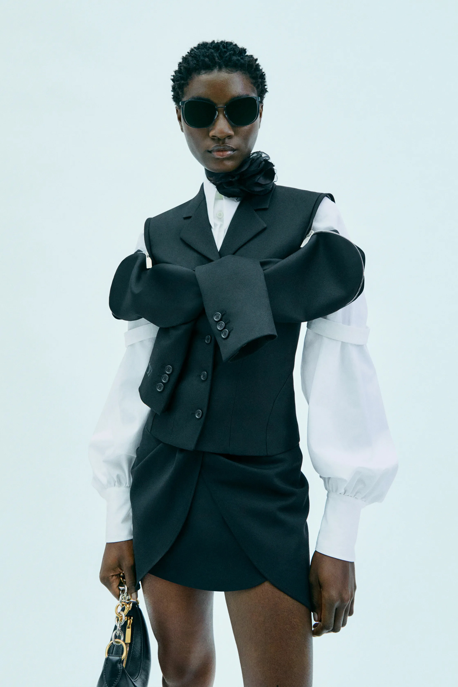 In Off-White Resort 2024, i gilet in maglia stretch di pizzo sono abbinati a capi che accentuano la silhouette femminile, mentre l’abbinamento giacca pantalone si mostra imperante per quanto riguarda la costruzione degli outfit maschili.