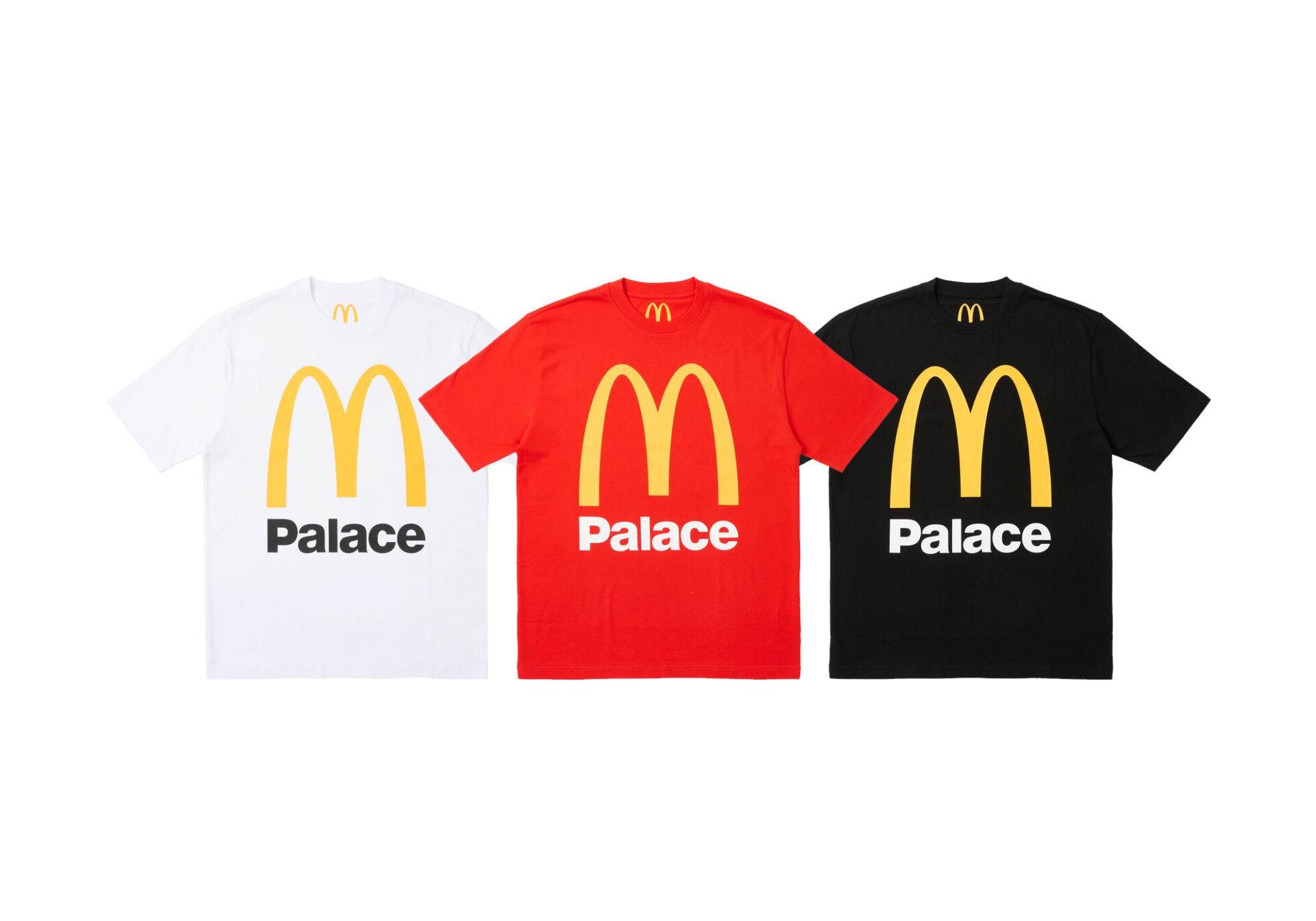 Successivamente, le prime immagini di quella che sarà la capsule collection sono trapelate online, svelando T-shirt e hoodie, su cui spiccano gli stilemi tipici di entrambi i marchi. Per il colosso americano, compaiono gli iconici Golden Arches. La controparte elaborata da Palace, invece, vede protagonista non solo il lettering, ma anche le iconiche e accattivanti descrizioni. 15 sono gli item totali, che vedono la presenza anche di un anello dorato, tempestato di piccoli rubini, unico accessorio della linea.