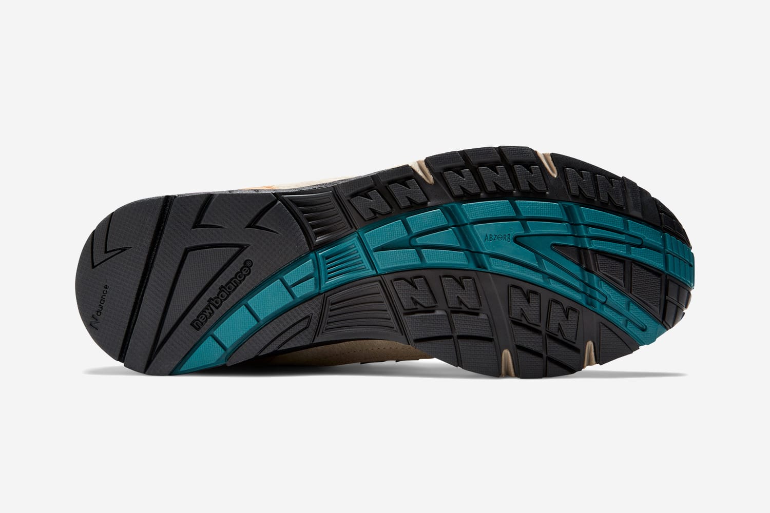 La seconda iterazione della sneaker presenta invece una tomaia in mesh color verde acqua abbinata a pannelli in pelle scamosciata marrone chiaro, alternata ad accenti marrone scuro che coprono i pannelli in pelle premium sul tallone e sull’avampiede. La sneaker presenta infine un detailing viola in corrispondenza del logo “N” e degli overlay sulla punta e sul colletto della caviglia. Come per il design della prima colorway, il co-branding della partnership appare sulla linguetta.