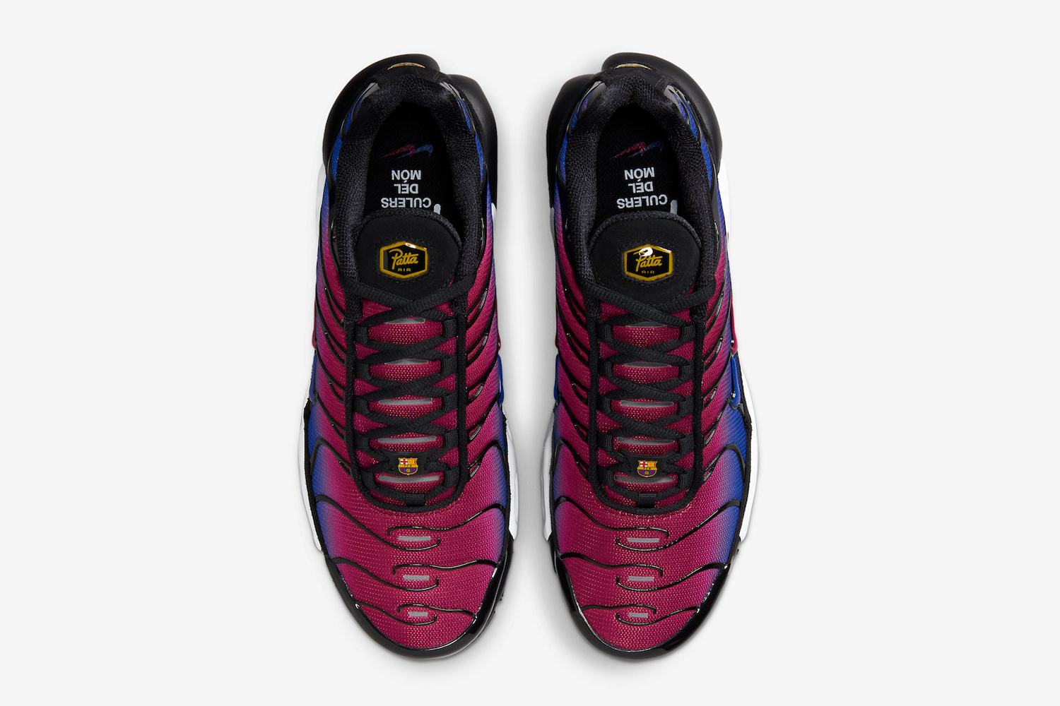 Scegliendo l’Air Max Plus come silhouette oggetto di rivisitazione, la partnership si è estesa anche ad una terza parte, rappresentata nientemeno che dal celebre club calcistico del Barcellona.