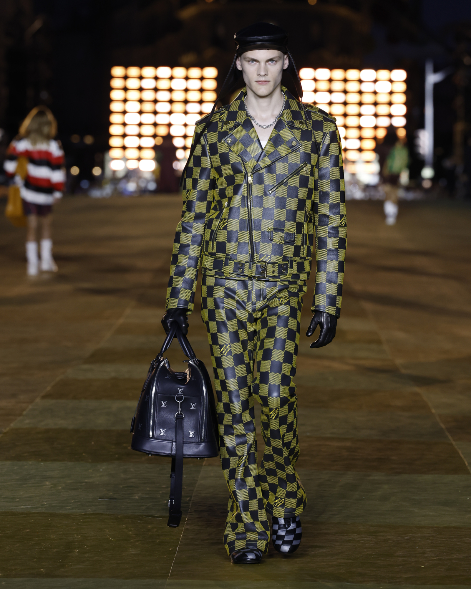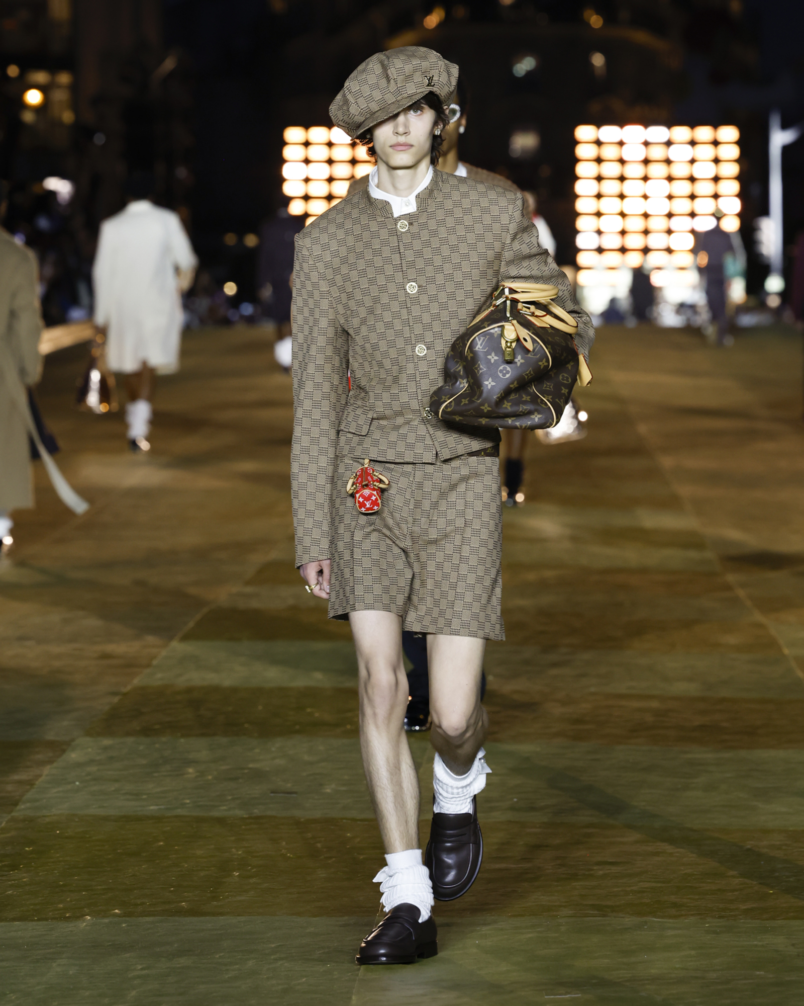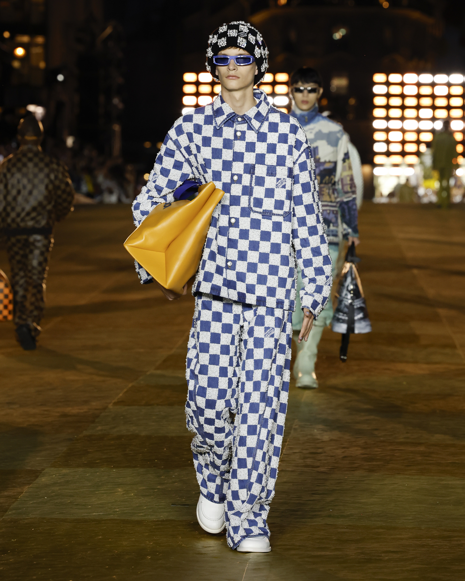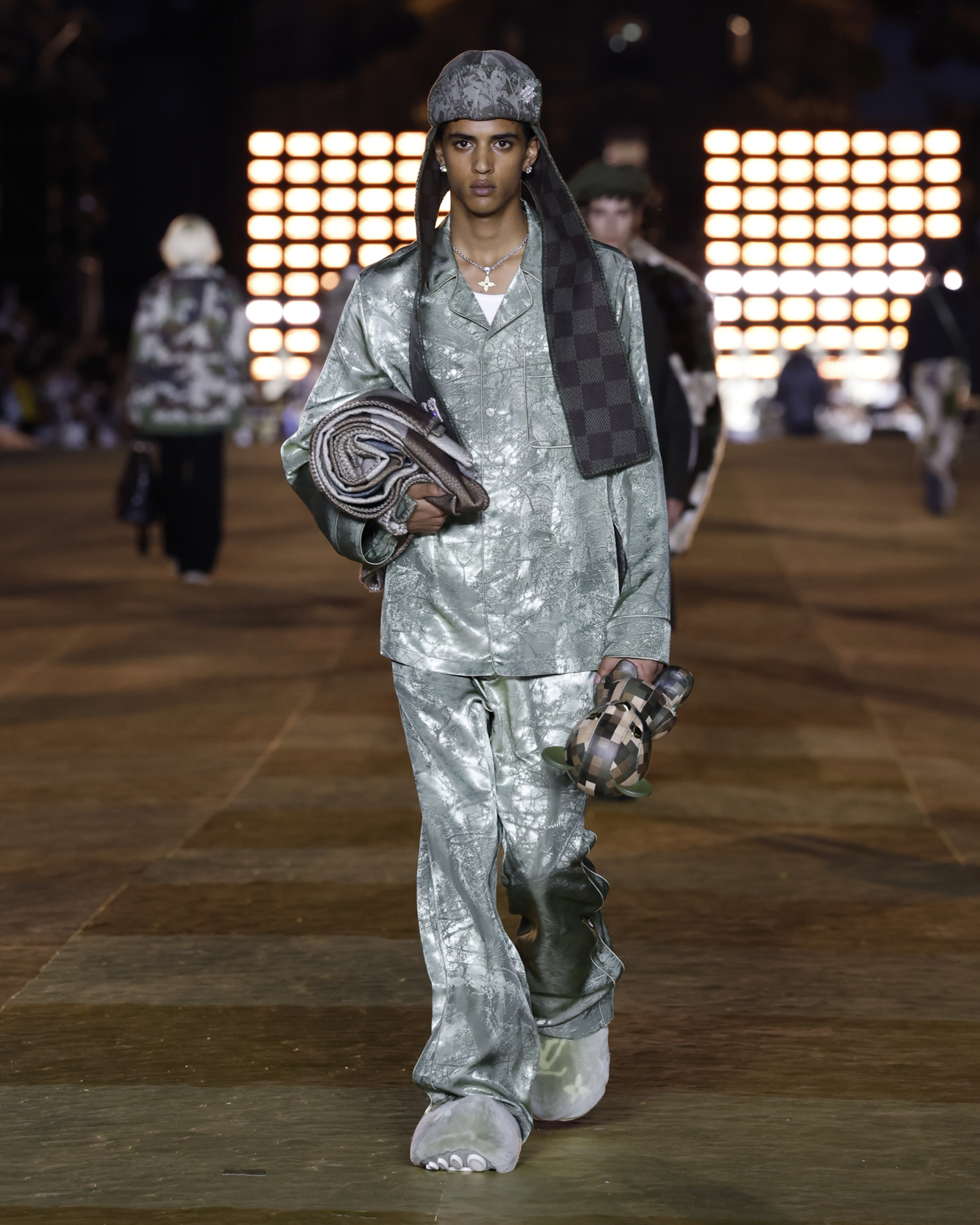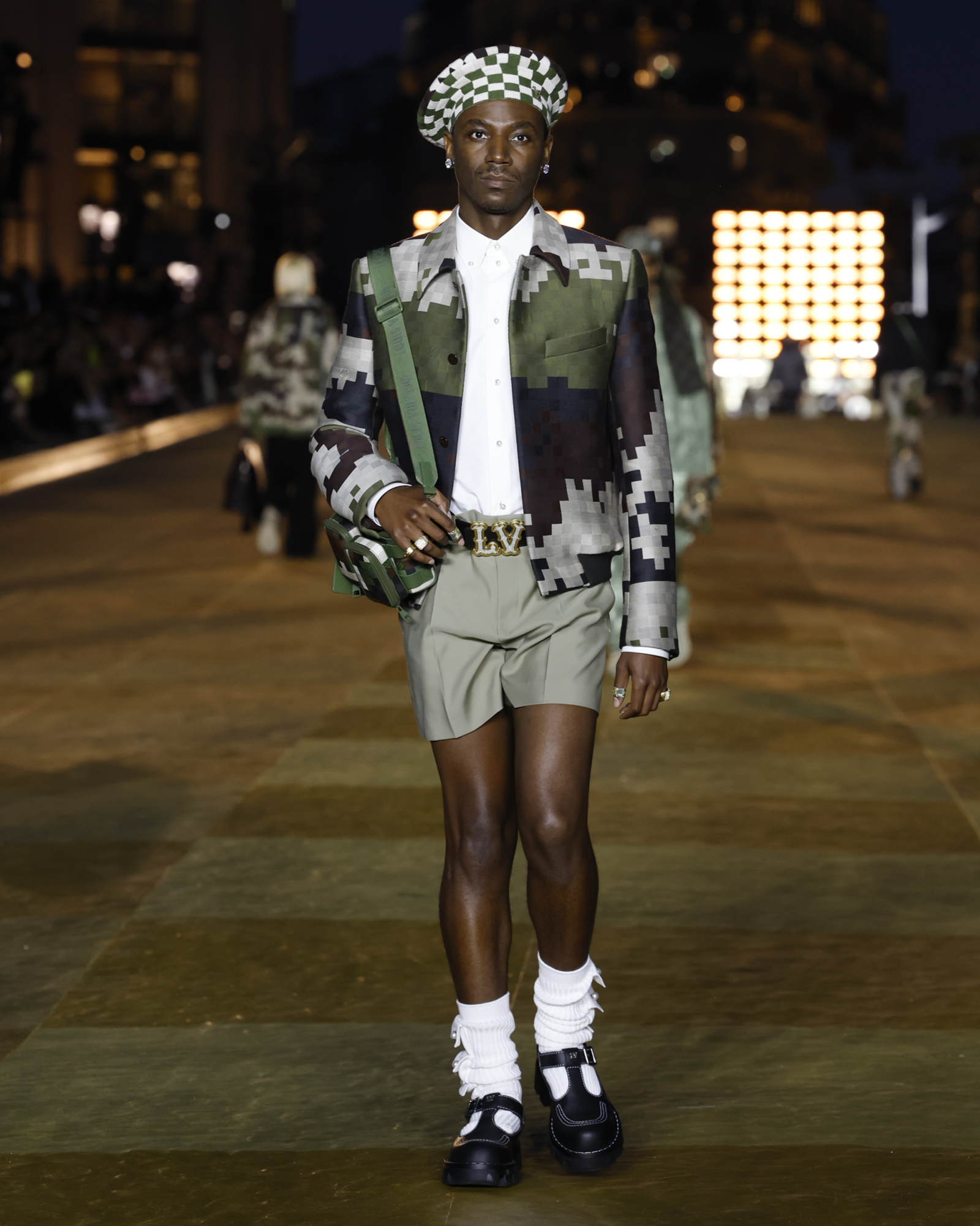 A coinvolgere maggiormente il pubblico, e nel dettaglio anche gli ospiti è stato il cosidetto “Damouflage”, un pattern che fonde l’iconico motivo Damier della maison con i quadrotti goffi dei pixel, dando vita ad un nuovo pattern, inconfondibile e ormai legato indissolubilmente alla figura di Pharrell. L’uomo che porta in scena Louis Vuitton è formale ed essenziale, presentando una linea per lo più incentrata sull’alta sartoria, con tocchi di contaminazione streetwear e militaresca.