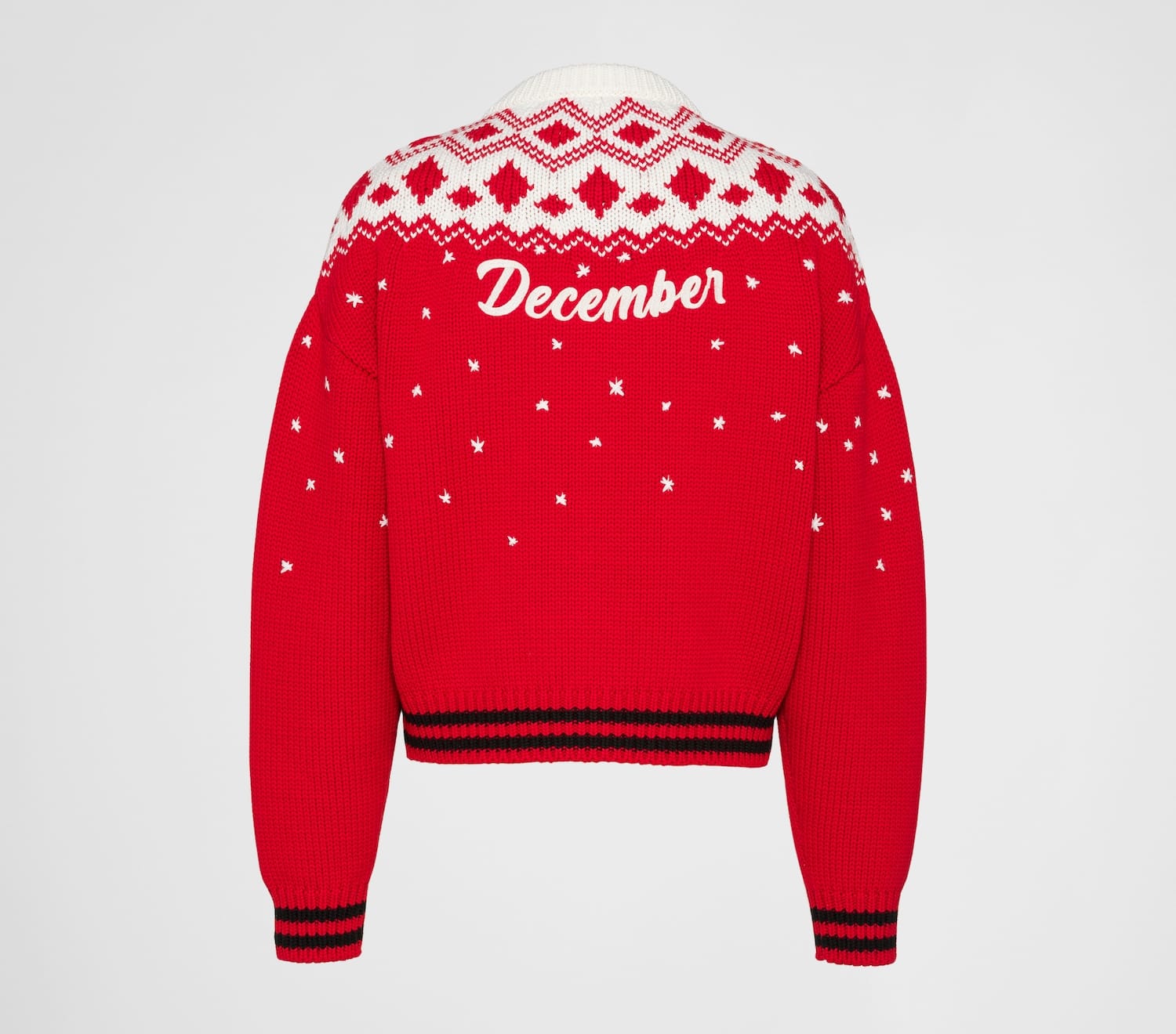La Time Capsule diPrada è arrivata anche per il periodo natalizio, con il brand italiano che ha presentato nelle ultime ore un nuovo prodotto pensato appositamente per trascorrere delle festività “cozy” senza sacrificare il senso dello stile: parliamo nello specifico di un tradizionale maglione a tema natalizio realizzato in una colorazione rosso vivo.