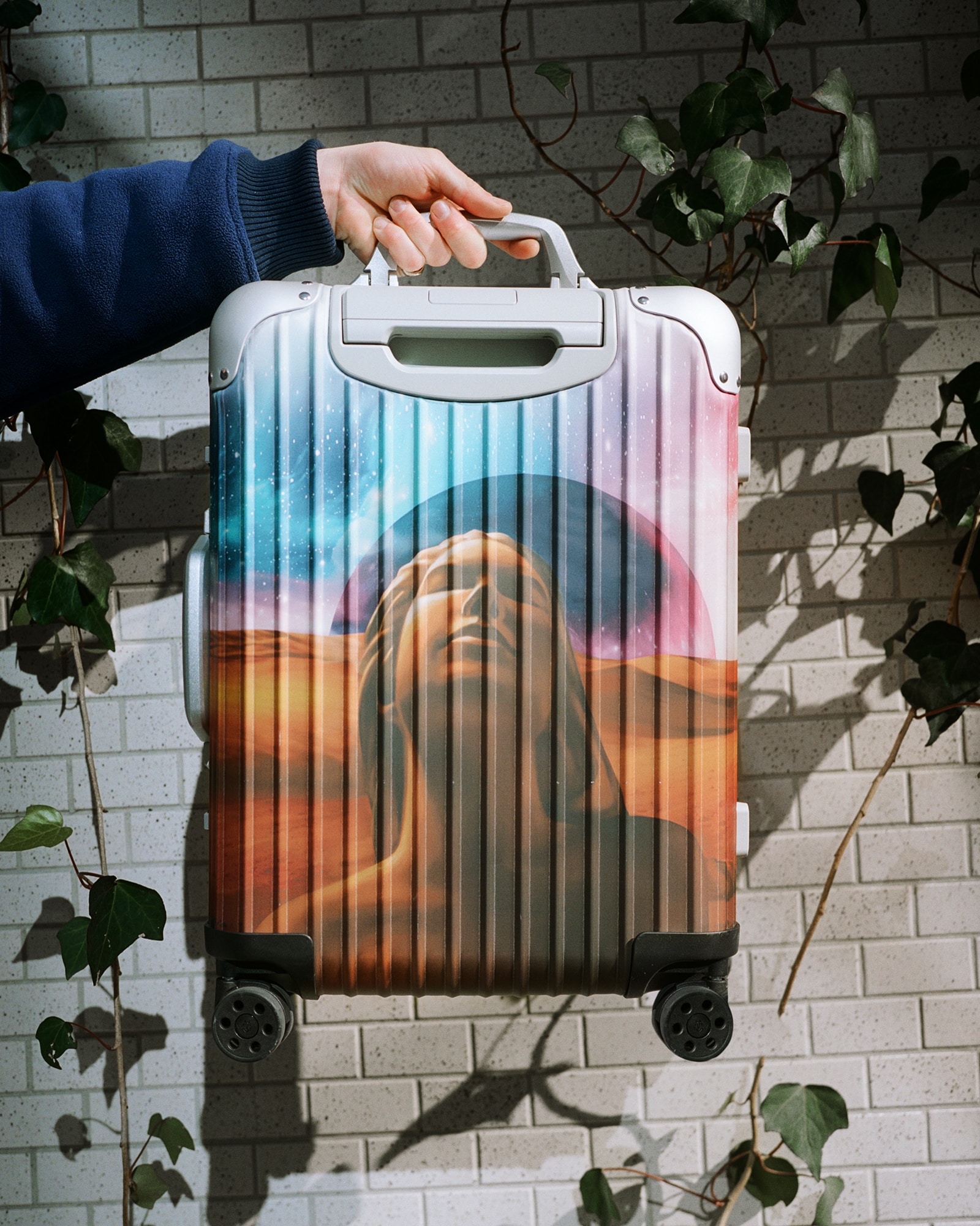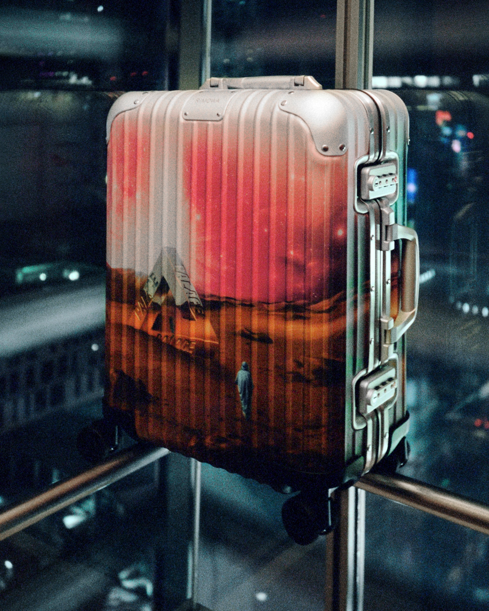 L’accessorio protagonista della collezione, ossia la Palace Rimowa Original Cabin Desert Suitcase, è decorato con un motivo che riprende le sembianze di un paesaggio desertico. L’opera d’arte è stata stampata in digitale e presenta il logo Palace affiancato dalla forma di “una figura nomade che cammina verso un monolite cromato, sorvegliato da una scultura di sabbia raffigurante una donna”. La valigia è stata prodotta in 500 esemplari complessivi.