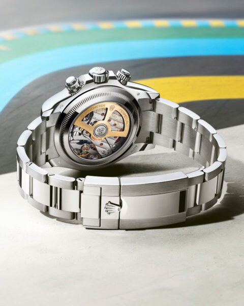 L’aura di esclusività del modello è alimentata infine da due fondamentali aggiunte, di cui in primo luogo il nuovo calibro 4132 (esclusivo per questo modello commemorativo) che integra lo scappamento Chronergy per ridurre la perdita di energia, il dispositivo antiurto Paraflex per proteggere il cuore del movimento, e un cuscinetto a sfere ottimizzato per migliorare la carica automatica, e in secondo luogo il fondello da esposizione posteriore che lo rende il primo Daytona in oro a utilizzare la particolare tipologia di fondello.