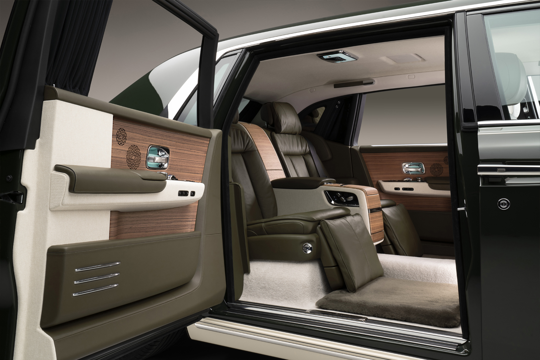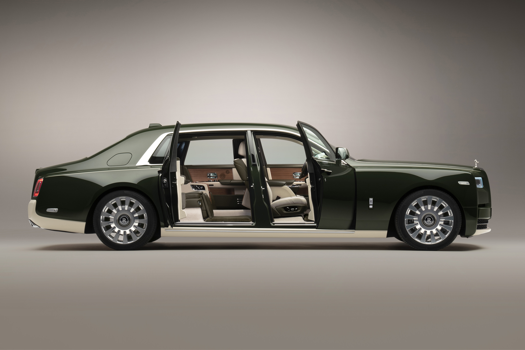 Questa speciale berlina è caratterizzata da un esterno bicolore, pensato per ricreare il pattern cromatico tipico delle antiche ceramiche. Sul bianco panna che pervade la sezione inferiore della carrozzeria, dunque, spicca l’elegante Oribe Green della parte superiore, un verde scuro sviluppato appositamente dall’azienda inglese per il cliente. La combinazione di queste tinte, inoltre, è stata utilizzata per personalizzare anche il jet privato dell’imprenditore, dando vita a una vera e propria coppia di veicoli di extra lusso.