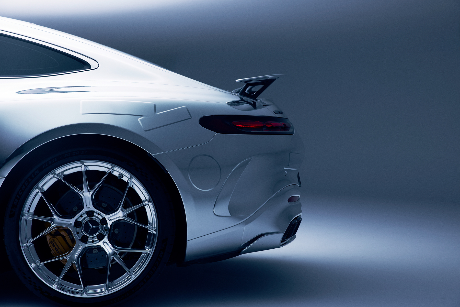 L’aggressività della vettura è introdotta dalla griglia a listelli verticali presente sul muso, ingrandita, ma in confronto alla versione precedente, le linee del posteriore e delle fiancate sono più eleganti e discrete, così come lo è il sottile spoiler retraibile. All’interno, Mercedes continua a fornire la massima tecnologia disponibile, con un cruscotto digitale da 12,3 pollici, posto davanti al volante sportivo AMG, e un ampio schermo per l’infotainment da 12,8 pollici.