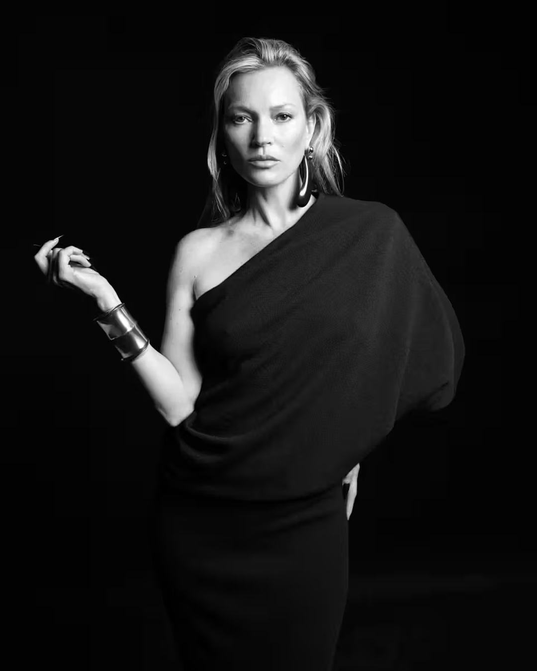 Nello specifico, Hailey Bieber viene immortalata mentre posa sdraiata su un divano in un elegante look prêt-à-porter autunnale firmato Saint Laurent impreziosito da orecchini oversize e da un vistoso braccialetto, mentre Kate Moss si presenta avvolta in un abito monospalla.