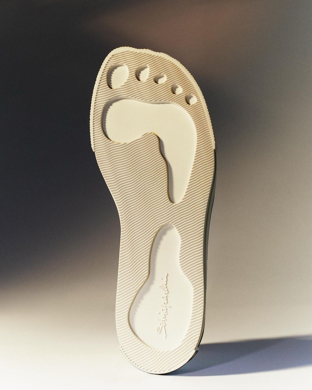 Anche gli occhielli sono impreziositi da dettagli dorati, mentre il design della midsole è irregolare e adorna delicatamente i bordi della scarpa dove sotto è presente inoltre l’impronta rompe l’oeil di Elsa Schiaparelli.