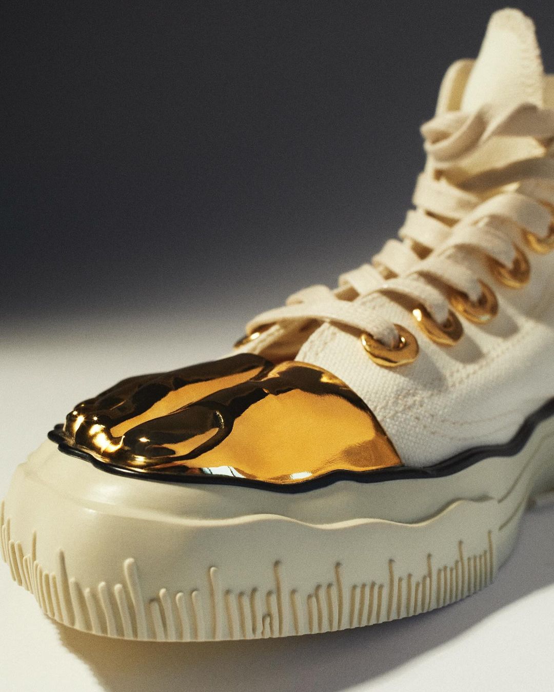 Le scarpe “Gold Toe Trainers” di Schiaparelli sono già disponibili sul sito web del brand al prezzo 2300€.