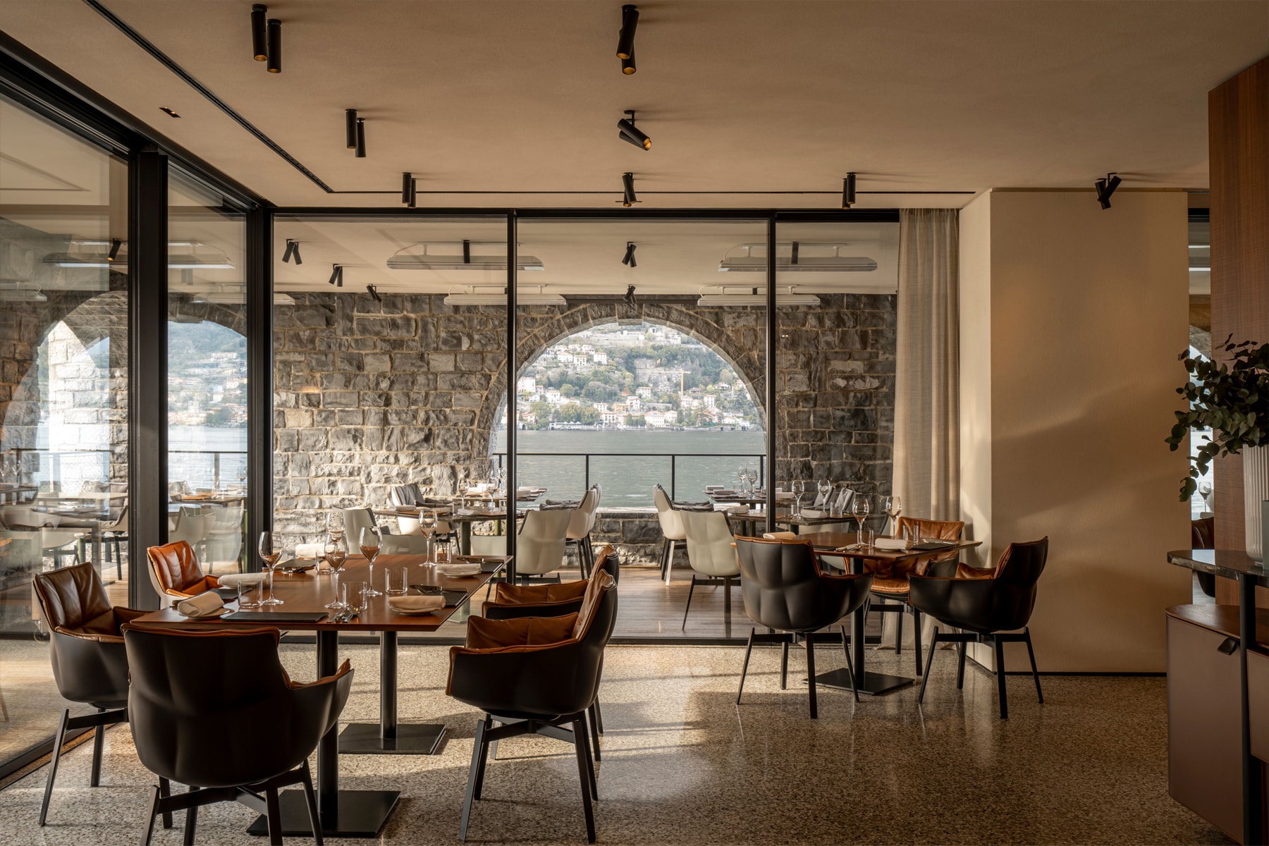 Dal punto di vista della progettazione, il Ristorante Il Sereno Al Lago, firmato Urquiola, si armonizza perfettamente con il Lago grazie all’utilizzo di materiali come il Terrazzo Veneziano, la Pietra di Travertino e quella di Moltrasio. Il risultato è un ambiente elegante e raffinato, che unisce la bellezza del paesaggio circostante alla squisita esperienza culinaria offerta dal ristorante.